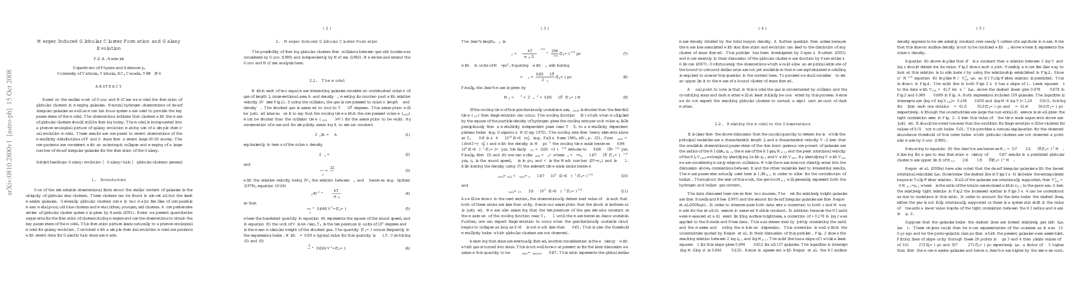 Based on the earlier work of Gunn and McCrea we model the formation of globular clusters in merging galaxies. Neutral hydrogen observations of dwarf irregular galaxies as well as more luminous systems are used to provide the key parameters of the model. The observations indicate that clusters with the mass of globular clusters should still be forming today. The model is incorporated into a phenomenological picture of galaxy evolution making use of a simple chemical evolution model. These results are compared to recent observations of the metallicity distributions of F and G stars from a recent large SDSS survey. The comparisons are consistent with an anisotropic collapse and merging of a large number of dwarf irregular galaxies for the formation of the Galaxy.