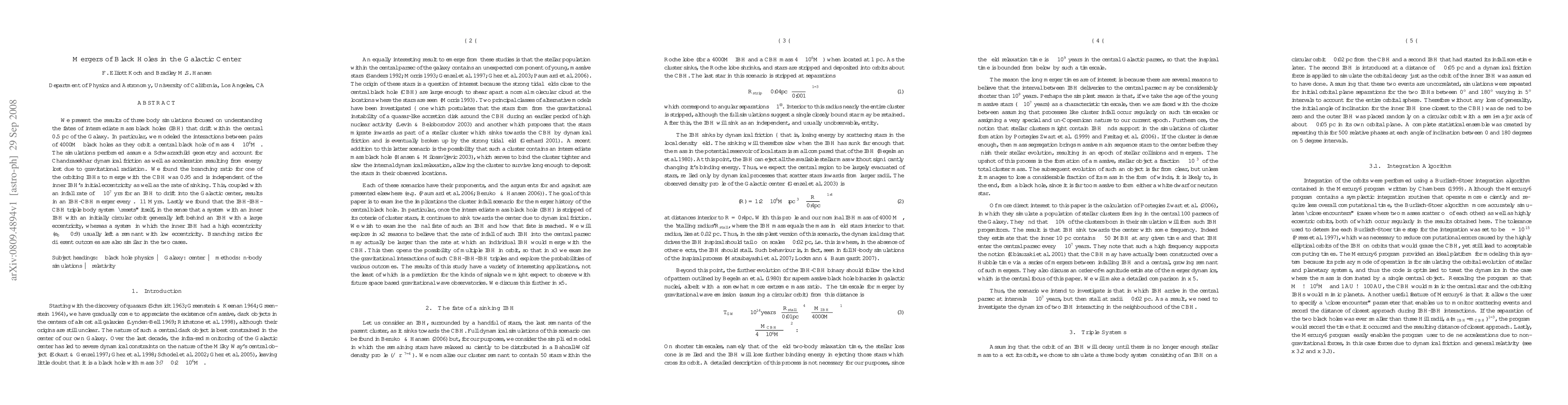 Simulations of black hole mergers in the Galactic Center suggest that intermediate mass black holes can merge with a central supermassive black hole every 11 Myrs, with a high branching ratio of 0.95.