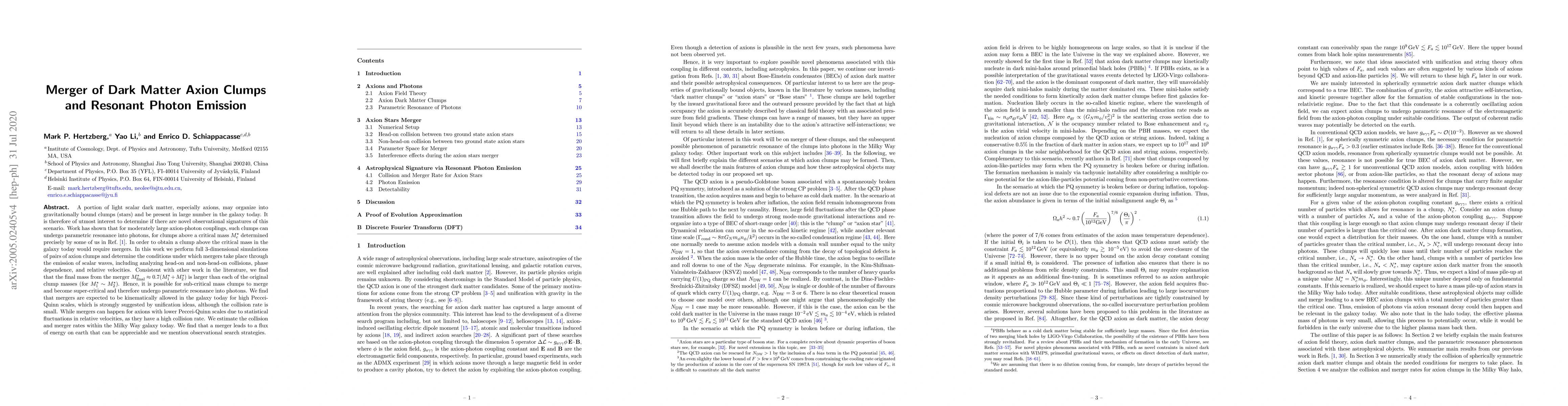 A portion of light scalar dark matter, especially axions, may organize into gravitationally bound clumps (stars) and be present in large number in the galaxy today. It is therefore of utmost interest to determine if there are novel observational signatures of this scenario. Work has shown that for moderately large axion-photon couplings, such clumps can undergo parametric resonance into photons, for clumps above a critical mass $M^{\star}_c$ determined precisely by some of us in Ref. [1]. In order to obtain a clump above the critical mass in the galaxy today would require mergers. In this work we perform full 3-dimensional simulations of pairs of axion clumps and determine the conditions under which mergers take place through the emission of scalar waves, including analyzing head-on and non-head-on collisions, phase dependence, and relative velocities. Consistent with other work in the literature, we find that the final mass from the merger $M^{\star}_{\text{final}}\approx 0.7(M^{\star}_1+M^{\star}_2)$ is larger than each of the original clump masses (for $M^{\star}_1\sim M^{\star}_2$). Hence, it is possible for sub-critical mass clumps to merge and become super-critical and therefore undergo parametric resonance into photons. We find that mergers are expected to be kinematically allowed in the galaxy today for high Peccei-Quinn scales, which is strongly suggested by unification ideas, although the collision rate is small. While mergers can happen for axions with lower Peccei-Quinn scales due to statistical fluctuations in relative velocities, as they have a high collision rate. We estimate the collision and merger rates within the Milky Way galaxy today. We find that a merger leads to a flux of energy on earth that can be appreciable and we mention observational search strategies.
