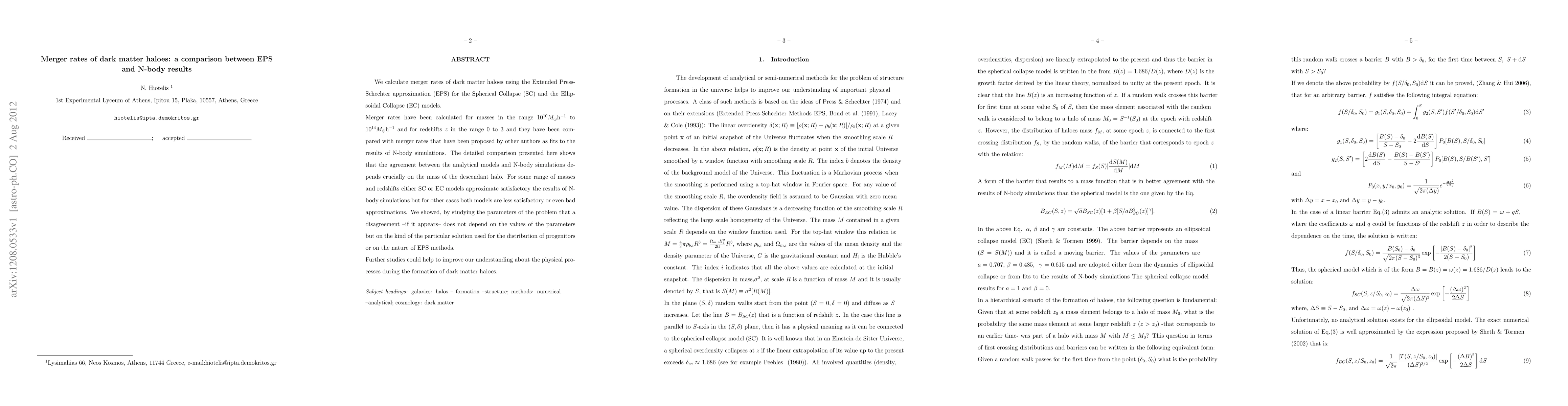 This paper compares merger rates of dark matter haloes derived from the Extended Press-Schechter (EPS) approximation with those from N-body simulations. It finds that while EPS models can satisfactorily approximate N-body results for certain mass ranges and redshifts, they fail for others, indicating the need for further studies to better understand halo formation processes.