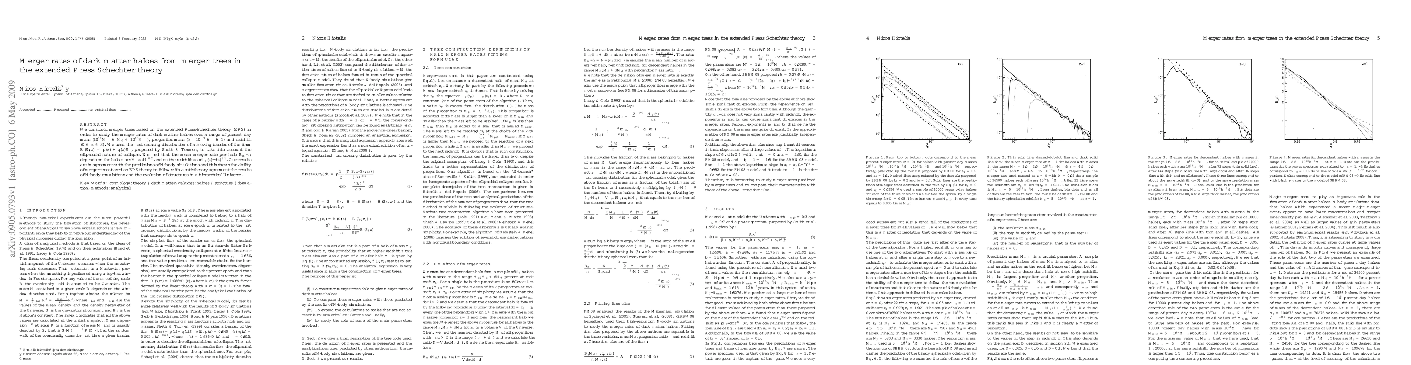 This paper constructs merger trees using the extended Press-Schechter theory to study the merger rates of dark matter haloes across various masses and redshifts. The results show that the mean merger rate per halo scales with mass as $M^{0.2}$ and with redshift as $(\mathrm{d}\delta_c(z)/\mathrm{d}z)^{1.1}$, aligning well with N-body simulation predictions.
