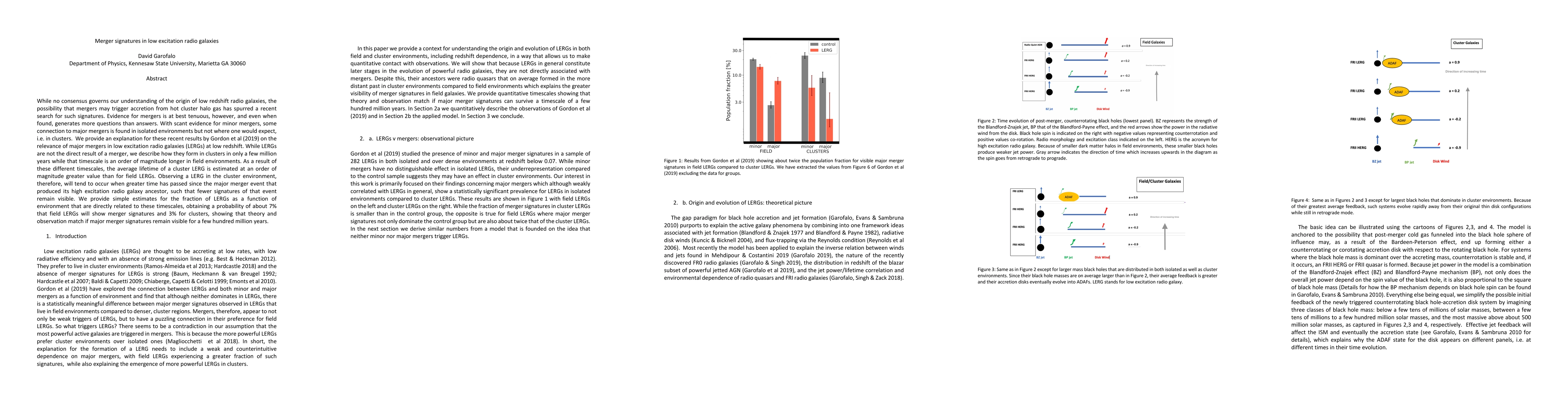 While no consensus governs our understanding of the origin of low redshift radio galaxies, the possibility that mergers may trigger accretion from hot cluster halo gas has spurred a recent search for such signatures. Evidence for mergers is at best tenuous, however, and even when found, generates more questions than answers. With scant evidence for minor mergers, some connection to major mergers is found in isolated environments but not where one would expect, i.e. in clusters. We provide an explanation for these recent results by Gordon et al (2019) on the relevance of major mergers in low excitation radio galaxies (LERGs) at low redshift. While LERGs are not the direct result of a merger, we describe how they form in clusters in only a few million years while that timescale is an order of magnitude longer in field environments. As a result of these different timescales, the average lifetime of a cluster LERG is estimated at an order of magnitude greater value than for field LERGs. Observing a LERG in the cluster environment, therefore, will tend to occur when greater time has passed since the major merger event that produced its high excitation radio galaxy ancestor, such that fewer signatures of that event remain visible. We provide simple estimates for the fraction of LERGs as a function of environment that are directly related to these timescales, obtaining a probability of about 7% that field LERGs will show merger signatures and 3% for clusters, showing that theory and observation match if major merger signatures remain visible for a few hundred million years.