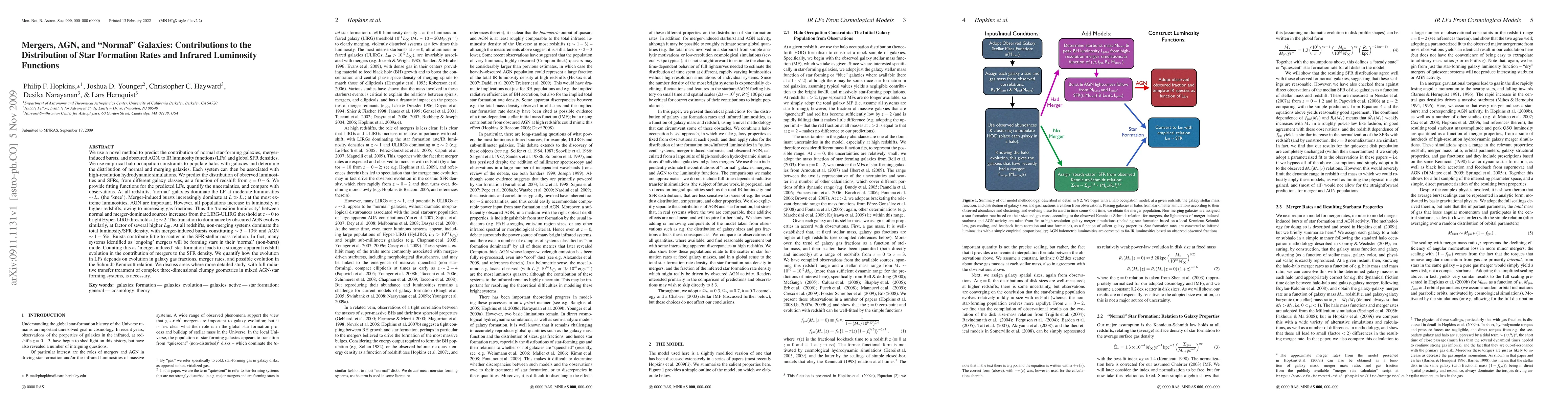 This paper uses a novel method to predict contributions of normal star-forming galaxies, merger-induced bursts, and AGN to IR luminosity functions and global SFR densities, finding that 'normal' galaxies dominate at moderate luminosities, while mergers and AGN become more significant at higher luminosities and redshifts. Non-merging systems contribute most to total luminosity/SFR density, with mergers and AGN making smaller but notable contributions.