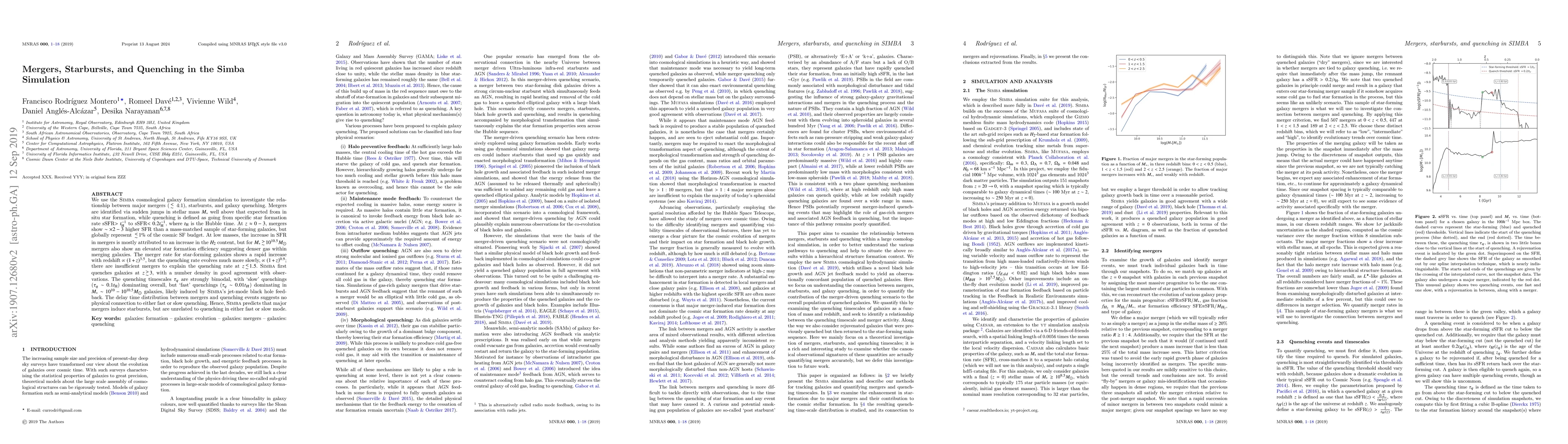 The Simba simulation reveals that major mergers induce starbursts but do not directly cause galaxy quenching, which occurs through different mechanisms independent of merger activity. The simulation shows that while mergers significantly boost star formation rates, they are insufficient to explain the observed quenching rate.