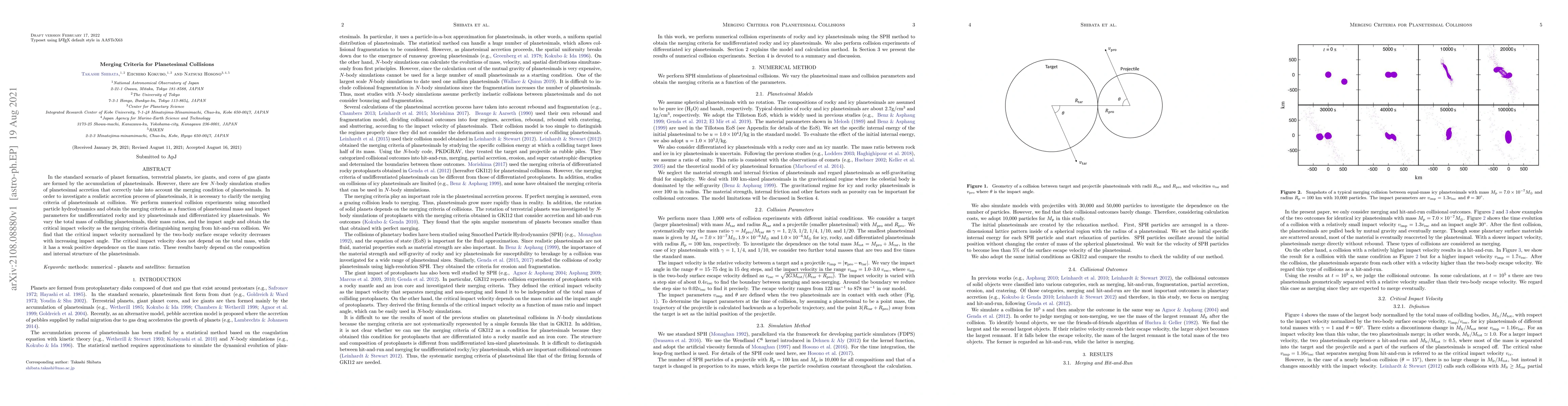 Researchers studied planetesimal collisions using numerical simulations and found that critical impact velocity for merging depends on mass ratio and impact angle, not total mass or composition.