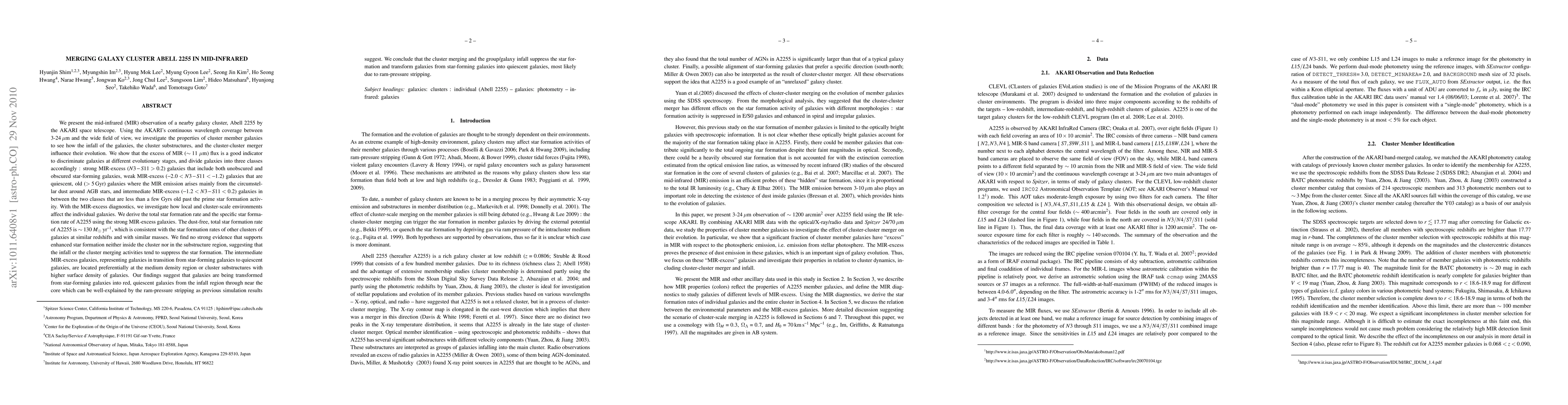 Abell 2255 by the AKARI space telescope. Using the AKARI's continuous