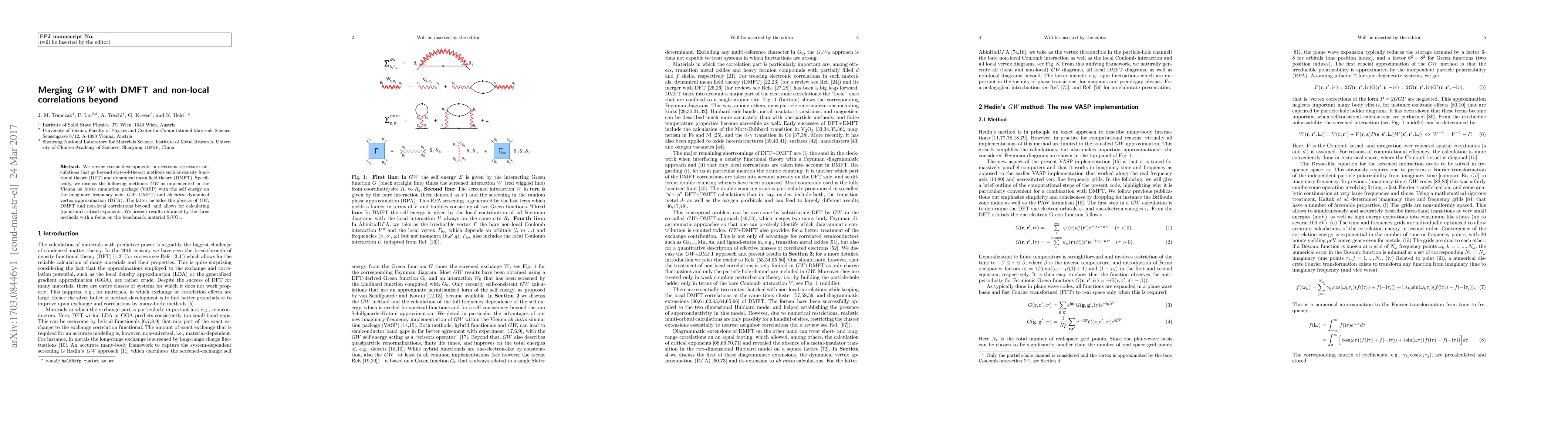 We review recent developments in electronic structure calculations that go beyond state-of-the-art methods such as density functional theory (DFT) and dynamical mean field theory (DMFT). Specifically, we discuss the following methods: GW as implemented in the Vienna {\it ab initio} simulation package (VASP) with the self energy on the imaginary frequency axis, GW+DMFT, and ab initio dynamical vertex approximation (D$\Gamma$A). The latter includes the physics of GW, DMFT and non-local correlations beyond, and allows for calculating (quantum) critical exponents. We present results obtained by the three methods with a focus on the benchmark material SrVO$_3$.