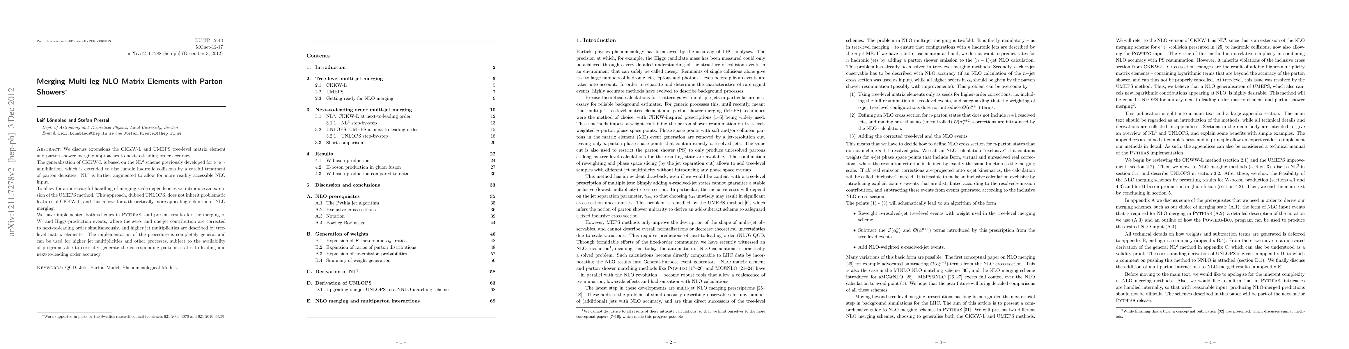 This paper extends CKKW-L and UMEPS merging techniques to next-to-leading order accuracy for multi-leg matrix elements and parton showers, implementing the NL3 scheme and a new UNLOPS method in Pythia8. The results demonstrate improved handling of NLO merging scale dependencies and accurate corrections for W- and Higgs-production events.