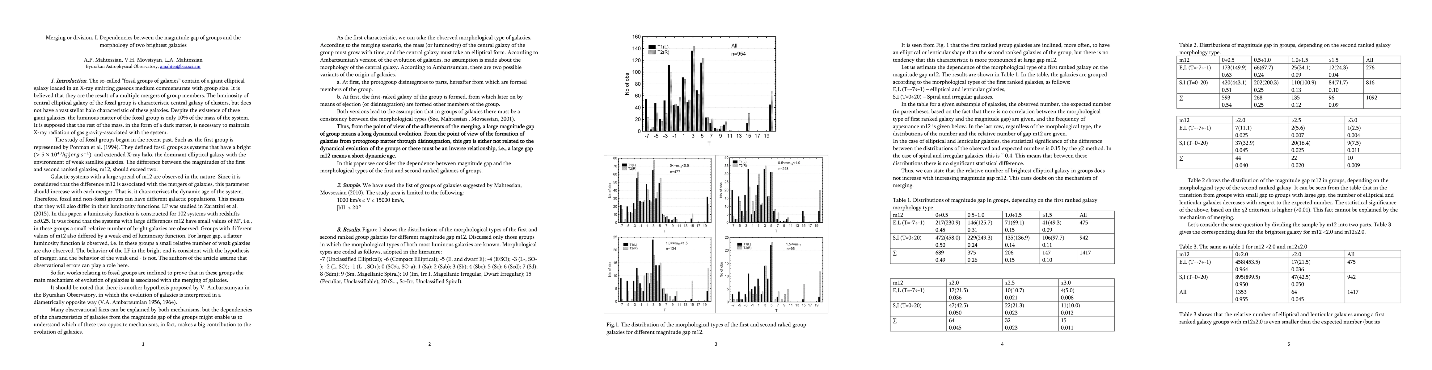 In the present study, the dependences of the morphological types of the first and second ranked group galaxies on the magnitude gap were studied. It is shown that there is no increase in the relative number of elliptical galaxies among the first and second ranked group galaxies with a large magnitude gaps (in comparison with the expected, assuming that the morphological type of these galaxies does not depend on the magnitude gap). This result contradicts the merger hypothesis. The hypothesis proposed by Ambartsumian does not contradict this result.