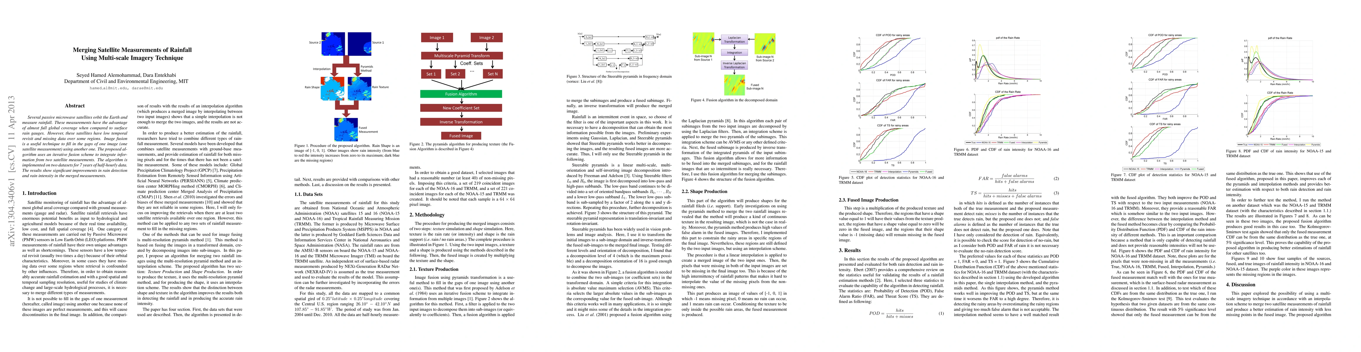This paper proposes an iterative fusion algorithm to merge satellite measurements of rainfall, improving data coverage and accuracy by integrating information from multiple satellites. The results demonstrate significant enhancements in both rain detection and intensity over a 7-year dataset.