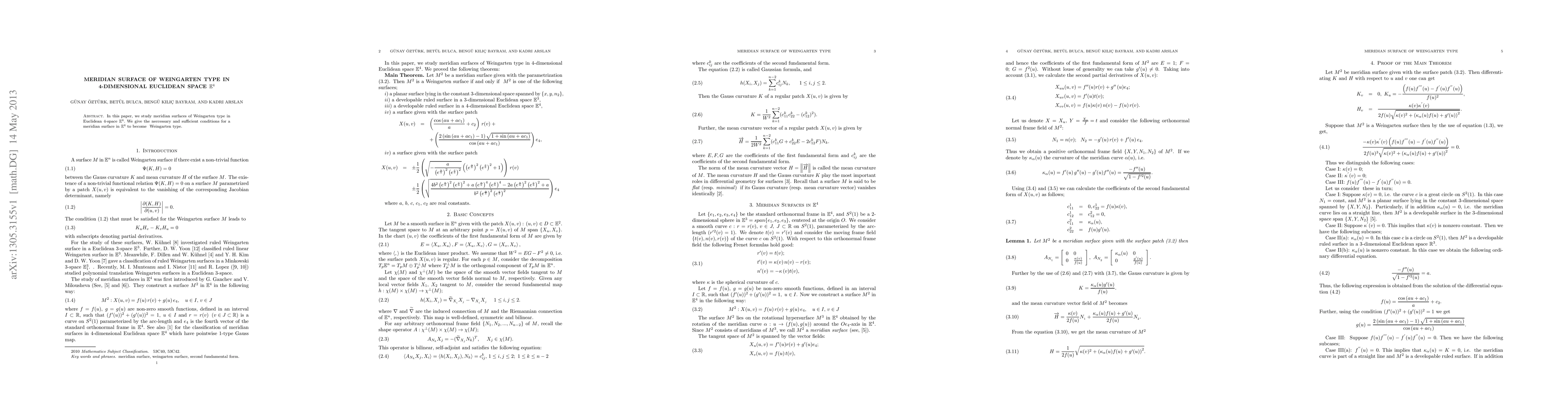 Summary: This paper investigates meridian surfaces of Weingarten type in 4-dimensional Euclidean space E^4, providing necessary and sufficient conditions for such surfaces to exhibit this specific geometric property.