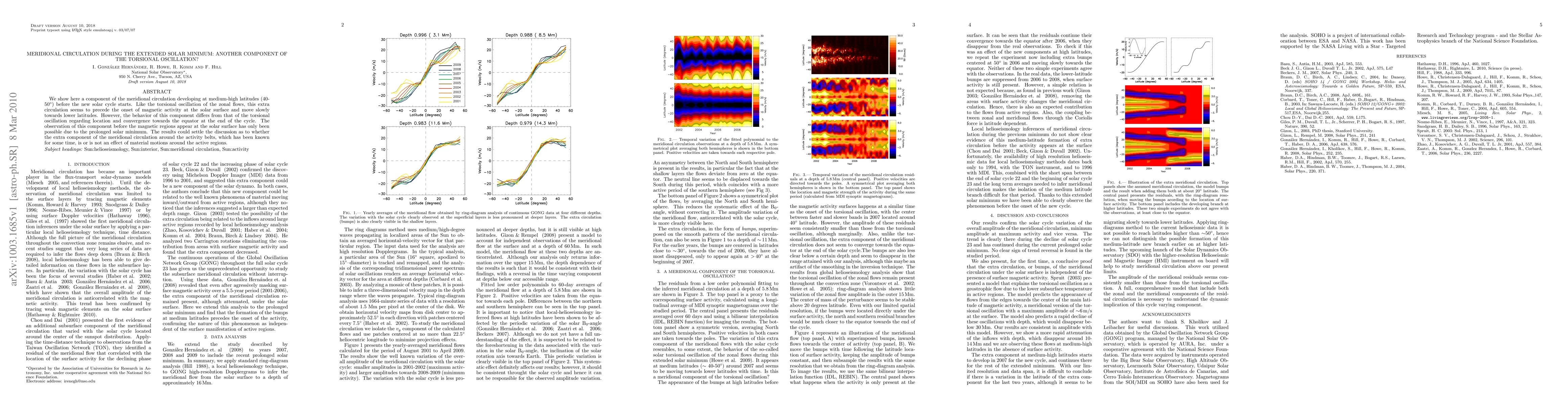 This paper identifies a new meridional circulation component developing at medium-high latitudes before the new solar cycle begins, similar to the torsional oscillation but differing in location and behavior. Observations during the extended solar minimum reveal this component's precursor role to magnetic activity onset, potentially clarifying its nature independent of active regions.