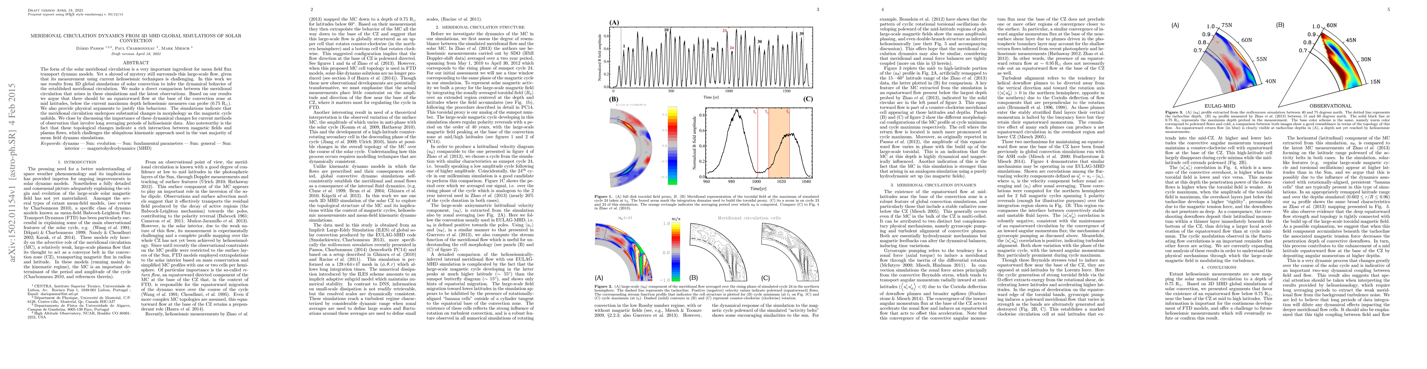 This paper uses 3D global simulations of solar convection to analyze the meridional circulation dynamics, revealing an equatorward flow at mid-latitudes below current helioseismic probing depths. The study highlights significant morphological changes in the circulation during the magnetic cycle, challenging traditional kinematic dynamo models.