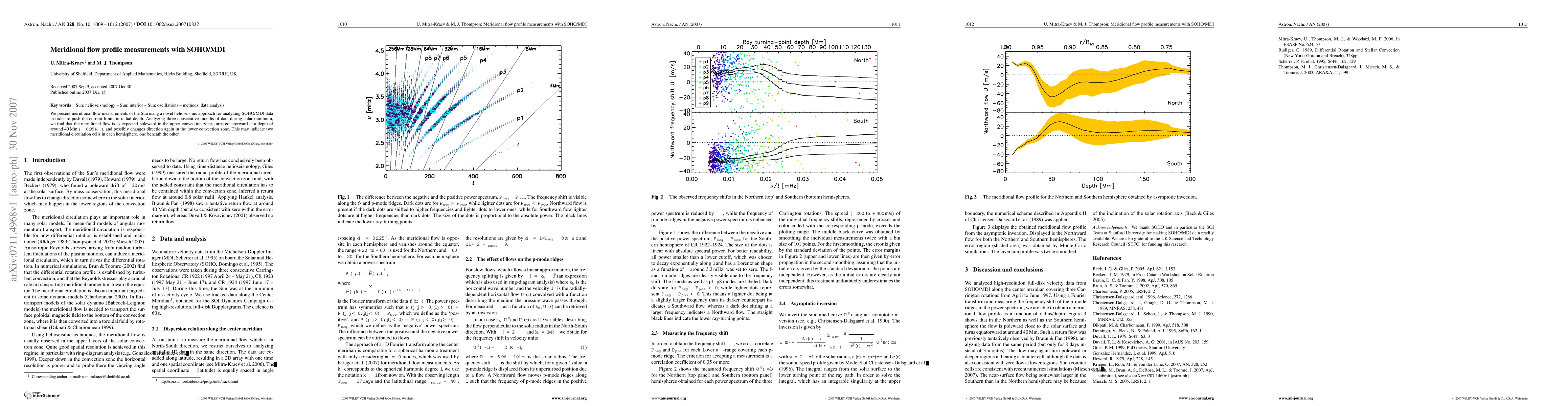This study uses a novel helioseismic method to analyze SOHO/MDI data, revealing meridional flow in the Sun's upper convection zone that turns equatorward at ~40 Mm depth and possibly reverses again in the lower convection zone, suggesting two meridional circulation cells per hemisphere.