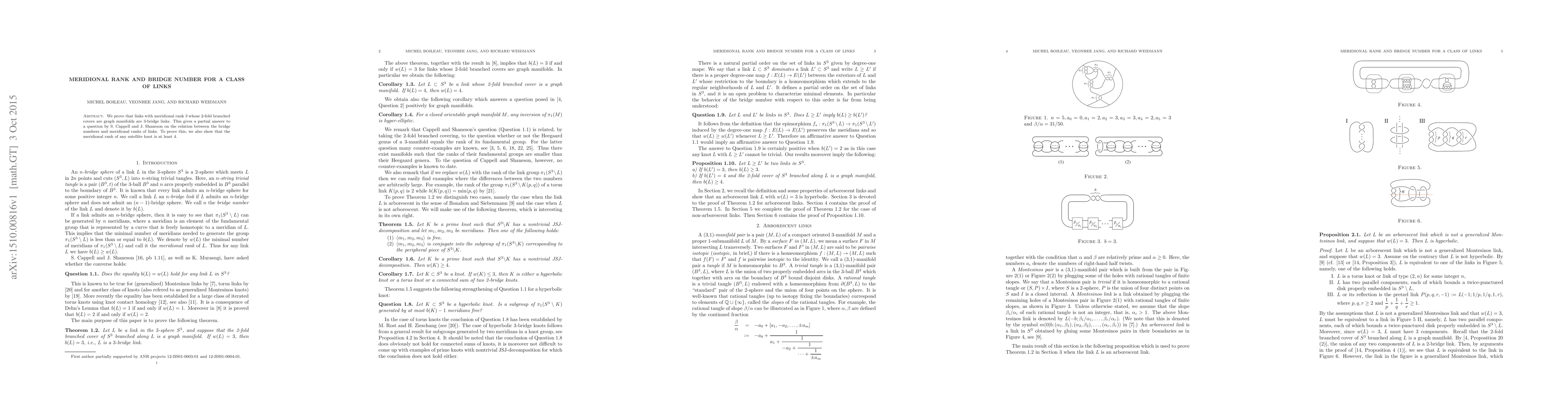 We prove that links with meridional rank 3 whose 2-fold branched covers are graph manifolds are 3-bridge links. This gives a partial answer to a question by S. Cappell and J. Shaneson on the relation between the bridge numbers and meridional ranks of links. To prove this, we also show that the meridional rank of any satellite knot is at least 4.