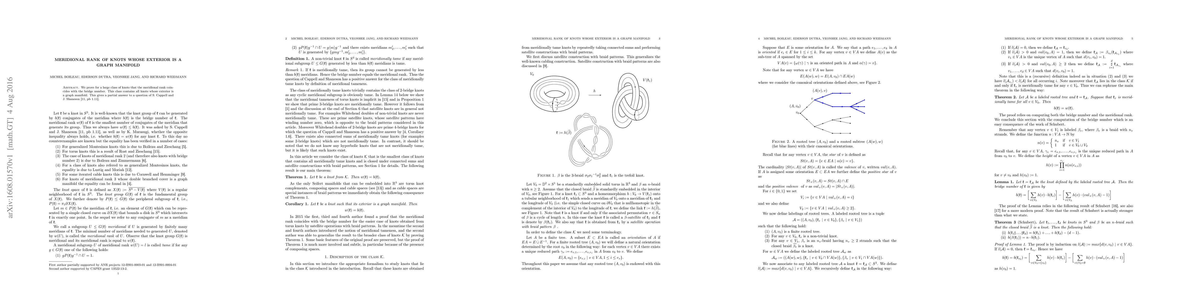 This paper proves that for a broad class of knots, specifically those whose exterior is a graph manifold, the meridional rank equals the bridge number. This result addresses a question posed by S. Cappell and J. Shaneson, contributing to problem 1.11 on Kirby's list.
