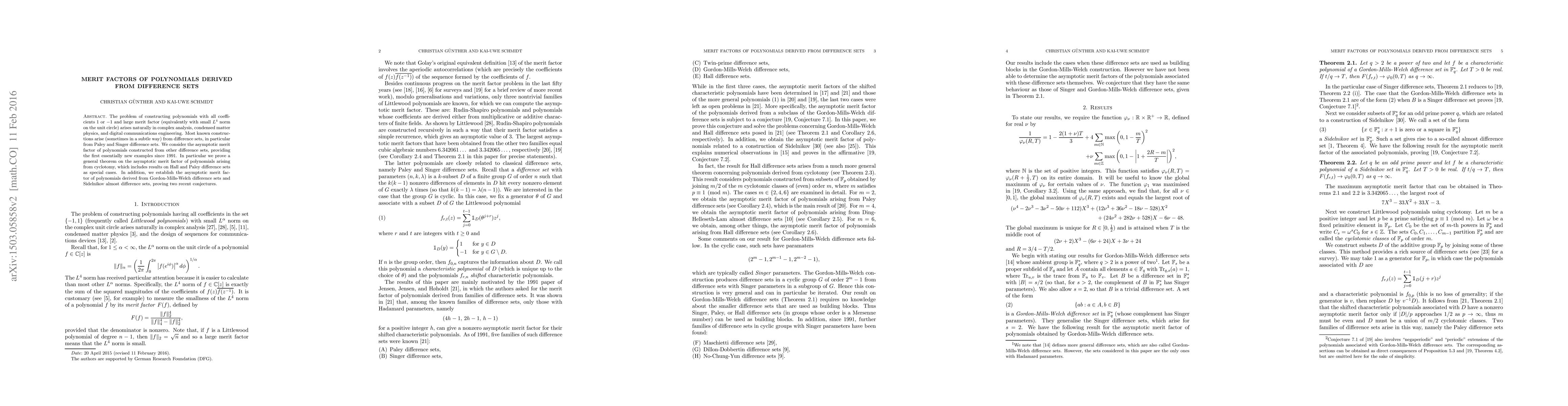 The problem of constructing polynomials with all coefficients $1$ or $-1$ and large merit factor (equivalently with small $L^4$ norm on the unit circle) arises naturally in complex analysis, condensed matter physics, and digital communications engineering. Most known constructions arise (sometimes in a subtle way) from difference sets, in particular from Paley and Singer difference sets. We consider the asymptotic merit factor of polynomials constructed from other difference sets, providing the first essentially new examples since 1991. In particular we prove a general theorem on the asymptotic merit factor of polynomials arising from cyclotomy, which includes results on Hall and Paley difference sets as special cases. In addition, we establish the asymptotic merit factor of polynomials derived from Gordon-Mills-Welch difference sets and Sidelnikov almost difference sets, proving two recent conjectures.