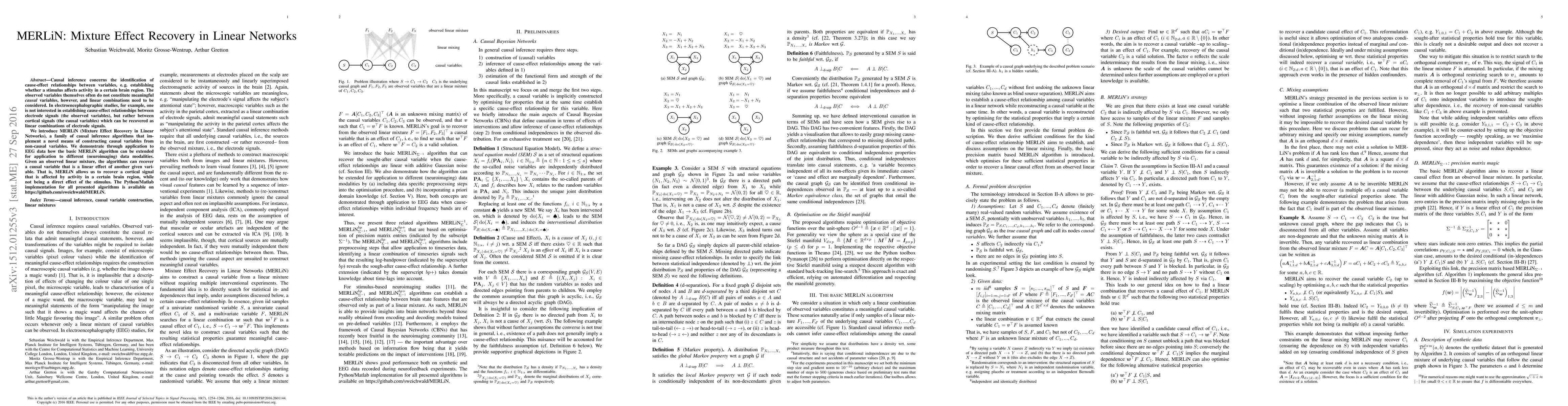 MERLiN is a novel causal inference algorithm designed to recover meaningful causal variables from observed linear combinations, particularly useful in EEG studies to infer cortical signals influenced by brain region activity. The algorithms are demonstrated through EEG data and can be extended to other neuroimaging modalities.