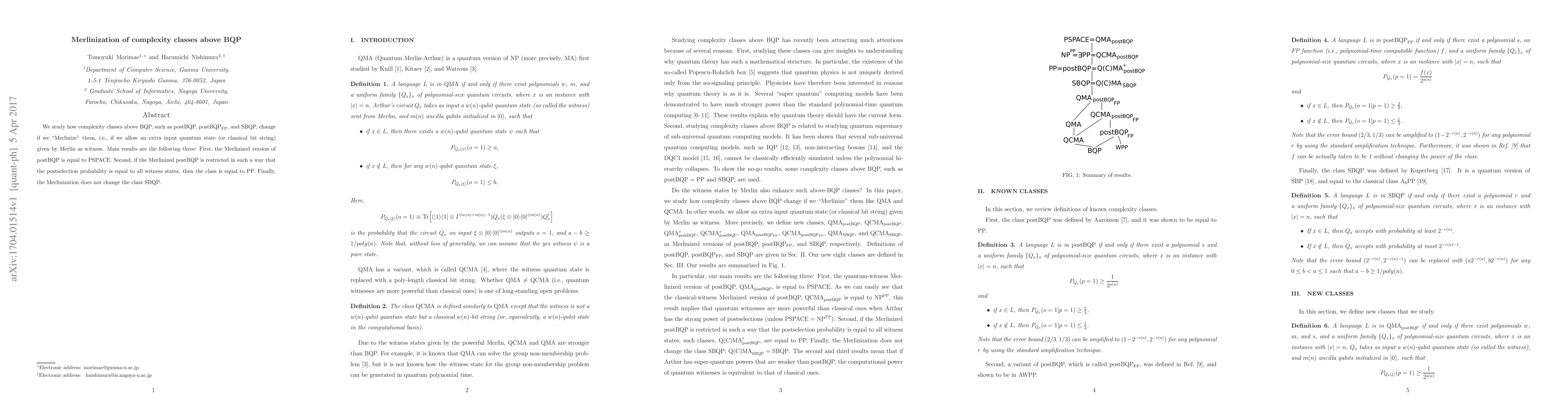 We study how complexity classes above BQP, such as postBQP, ${\rm postBQP}_{\rm FP}$, and SBQP, change if we "Merlinize" them, i.e., if we allow an extra input quantum state (or classical bit string) given by Merlin as witness. Main results are the following three: First, the Merlinized version of postBQP is equal to PSPACE. Second, if the Merlinized postBQP is restricted in such a way that the postselection probability is equal to all witness states, then the class is equal to PP. Finally, the Merlinization does not change the class SBQP.