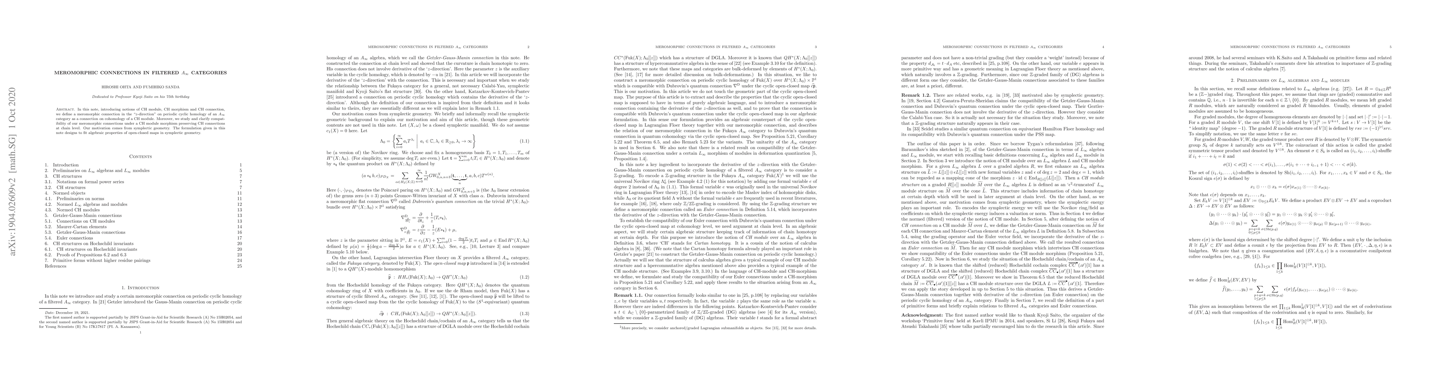 This paper introduces the concept of meromorphic connections in filtered $A_{\infty}$ categories, defining them in terms of periodic cyclic homology and CH modules. It also explores the compatibility of these connections under CH module morphisms, motivated by applications in symplectic geometry.