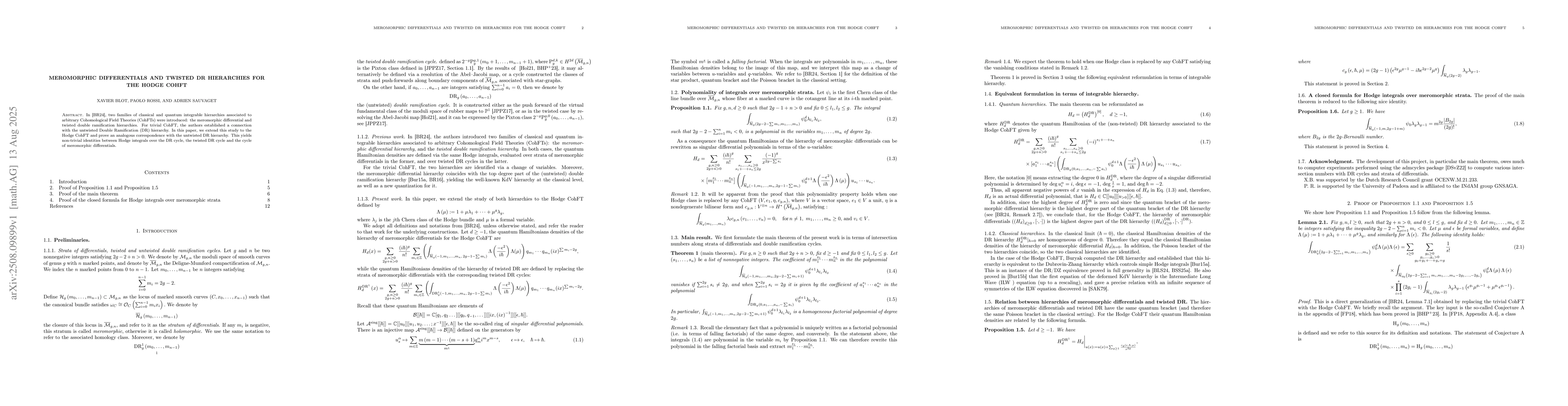 In [arXiv:2408.13806], two families of classical and quantum integrable hierarchies associated to arbitrary Cohomological Field Theories (CohFTs) were introduced: the meromorphic differential and twisted double ramification hierarchies. For trivial CohFT, the authors established a connection with the untwisted Double Ramification (DR) hierarchy. In this paper, we extend this study to the Hodge CohFT and prove an analogous correspondence with the untwisted DR hierarchy. This yields non-trivial identities between Hodge integrals over the DR cycle, the twisted DR cycle and the cycle of meromorphic differentials.