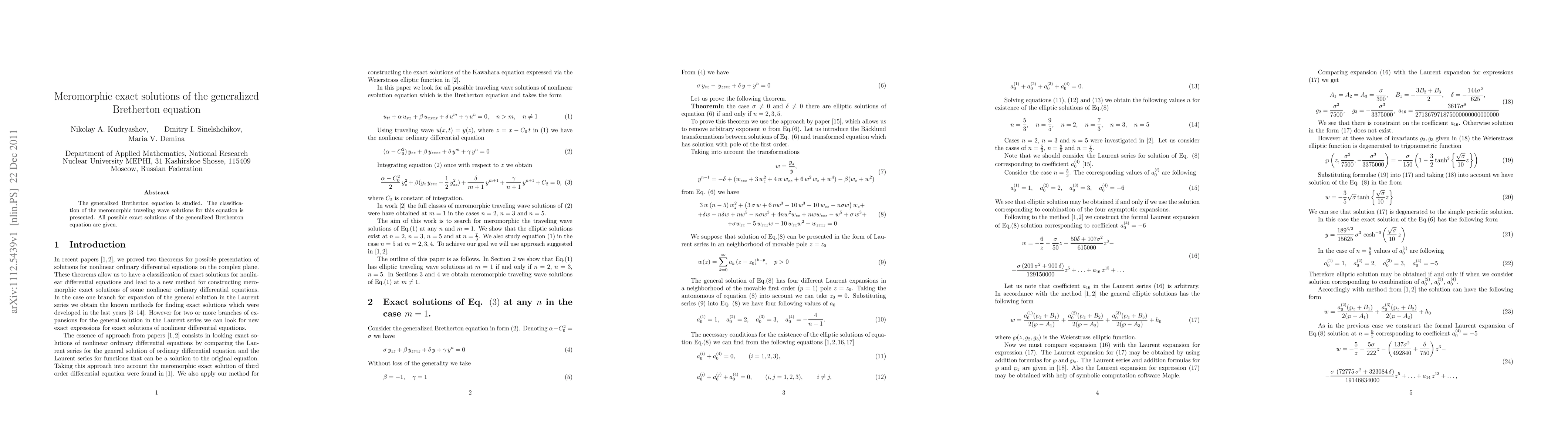 This paper classifies meromorphic traveling wave solutions for the generalized Bretherton equation and provides all possible exact solutions, offering a comprehensive overview of the equation's meromorphic exact solutions.