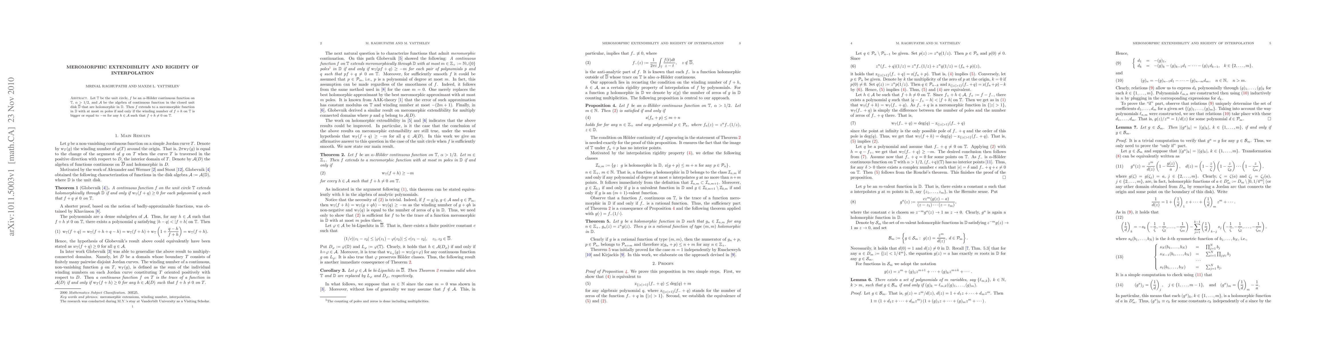 Let T be the unit circle, f be an \alpha-Holder continuous function on T, \alpha>1/2, and A be the algebra of continuous function in the closed unit disk \bar D that are holomorphic in D. Then f extends to a meromorphic function in D with at most m poles if and only if the winding number of f+h on T is bigger or equal to -m for any h\in A such that f+h \neq 0 on T.