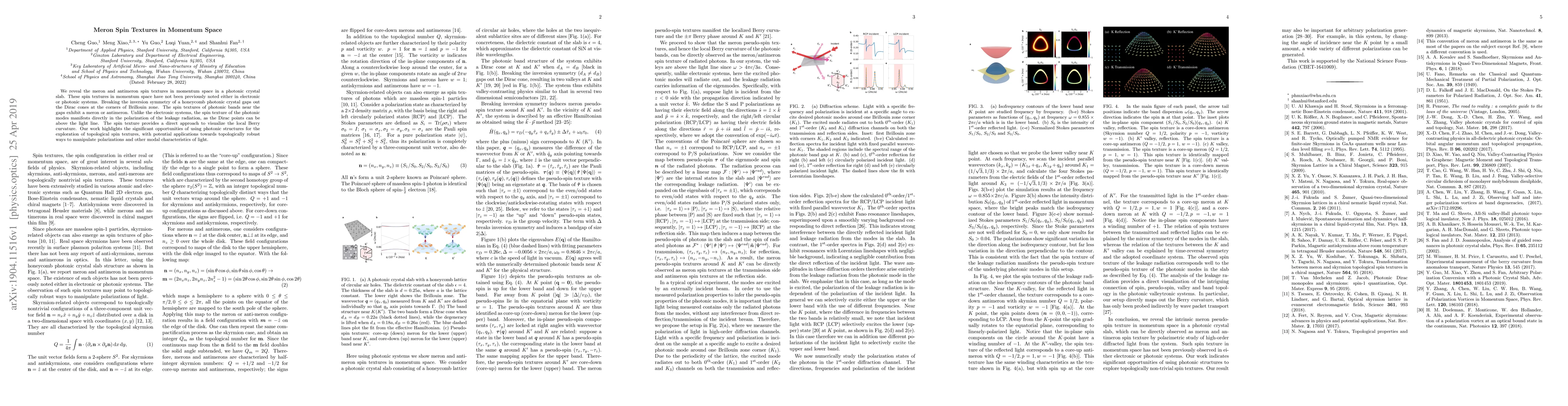 This paper uncovers novel meron and antimeron spin textures in momentum space within a photonic crystal slab, previously unobserved in electronic or photonic systems. These textures arise due to inversion symmetry breaking in a honeycomb photonic crystal, offering potential applications in manipulating light polarizations and topologically robust optical modalities.
