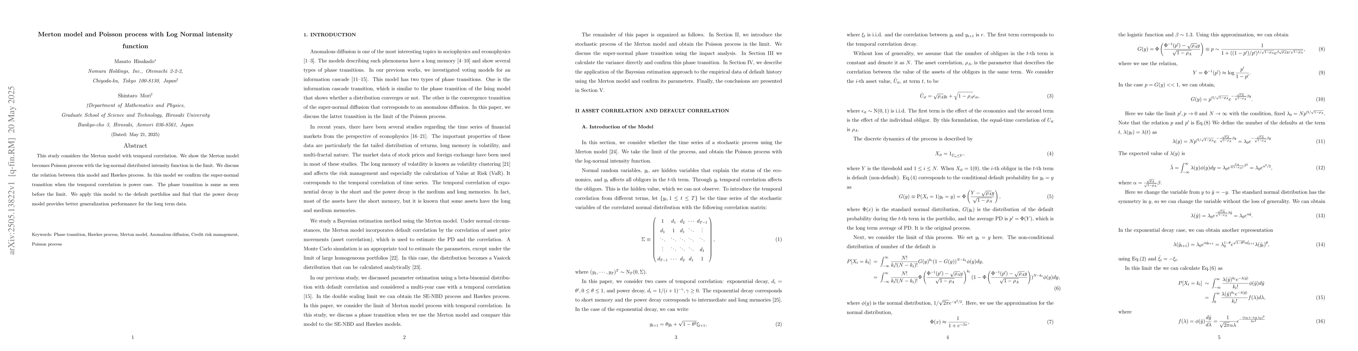The paper explores how a variant of the Merton model with log-normal intensity function can be approximated as a Poisson process in the limit, offering insights into its relationship with Hawkes processes. It also demonstrates improved generalization performance for long-term data using this approximation.