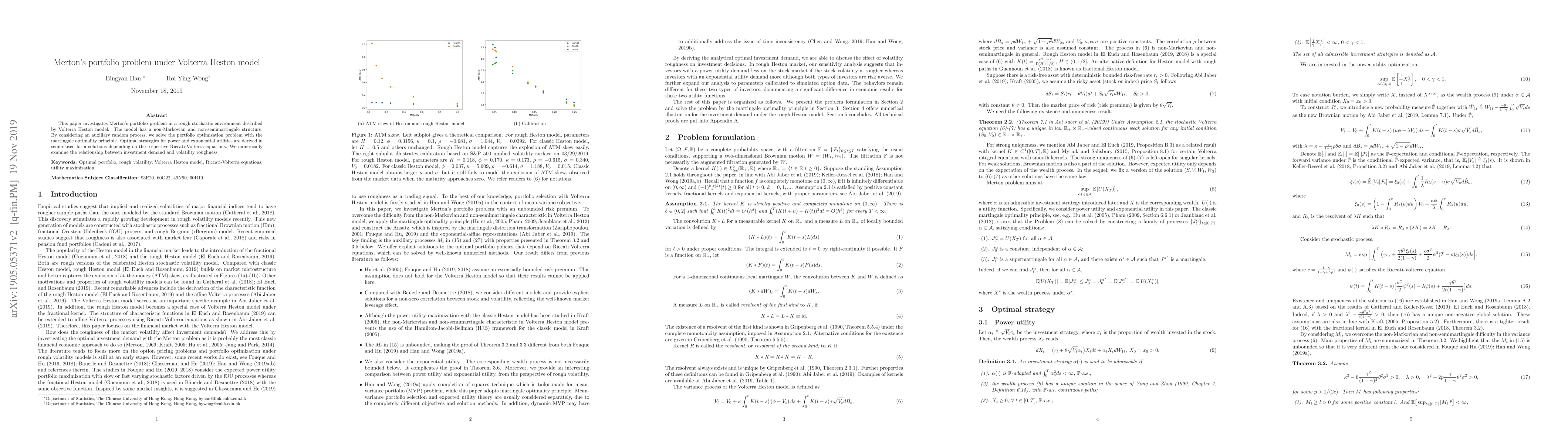 This paper investigates Merton's portfolio problem in a rough stochastic environment described by Volterra Heston model. The model has a non-Markovian and non-semimartingale structure. By considering an auxiliary random process, we solve the portfolio optimization problem with the martingale optimality principle. Optimal strategies for power and exponential utilities are derived in semi-closed form solutions depending on the respective Riccati-Volterra equations. We numerically examine the relationship between investment demand and volatility roughness.