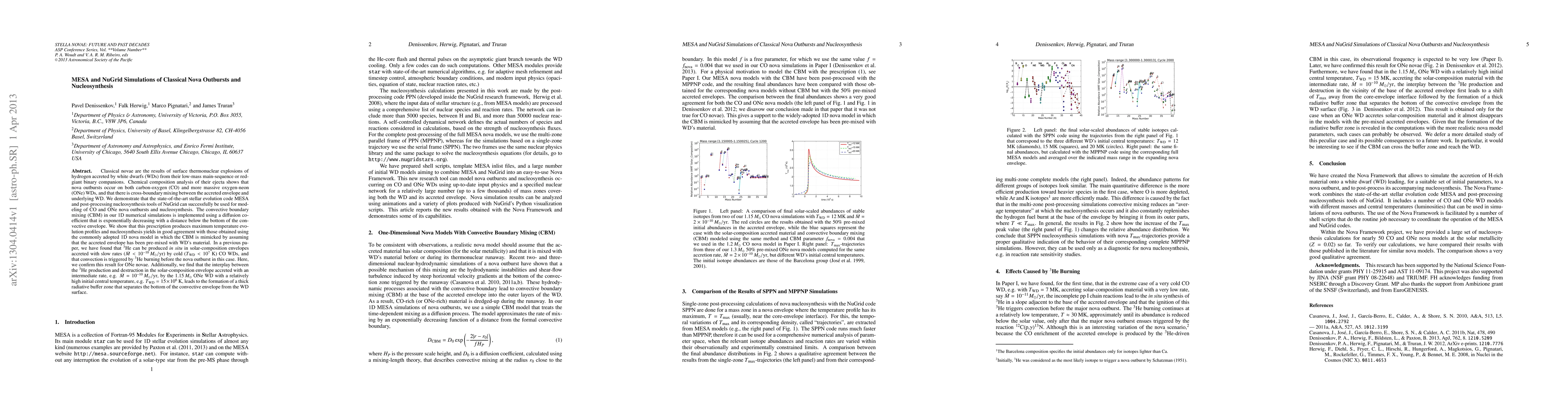 This paper uses MESA and NuGrid simulations to model classical nova outbursts on both CO and ONe white dwarfs, showing good agreement with traditional models. It confirms in situ 3He production in slowly accreted solar-composition envelopes and identifies a thick radiative buffer zone formation in intermediate accretion rates.