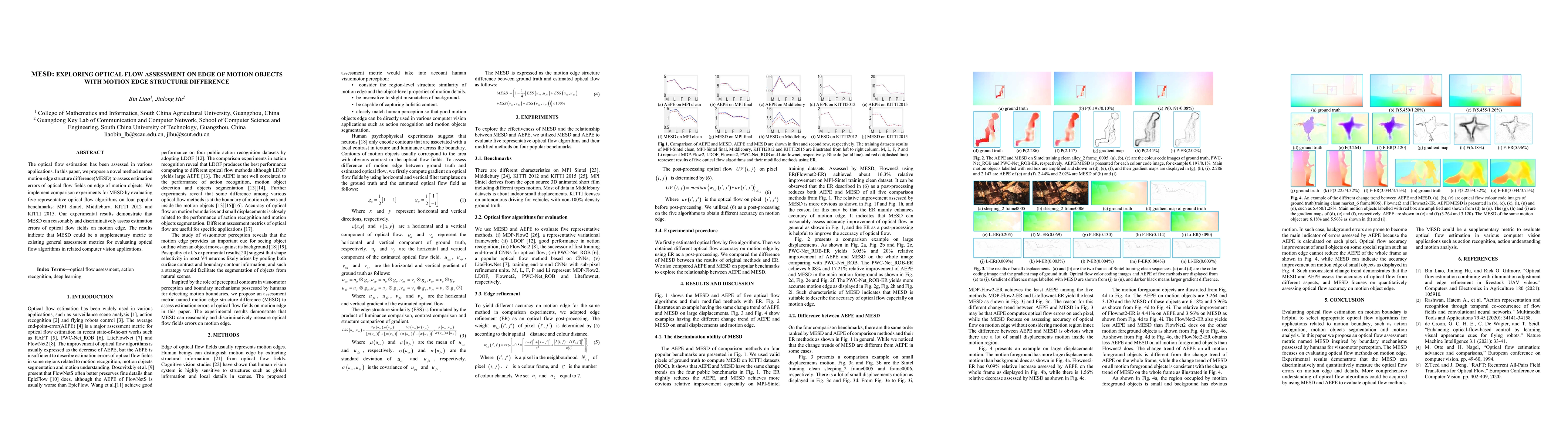 The optical flow estimation has been assessed in various applications. In this paper, we propose a novel method named motion edge structure difference(MESD) to assess estimation errors of optical flow fields on edge of motion objects. We implement comparison experiments for MESD by evaluating five representative optical flow algorithms on four popular benchmarks: MPI Sintel, Middlebury, KITTI 2012 and KITTI 2015. Our experimental results demonstrate that MESD can reasonably and discriminatively assess estimation errors of optical flow fields on motion edge. The results indicate that MESD could be a supplementary metric to existing general assessment metrics for evaluating optical flow algorithms in related computer vision applications.