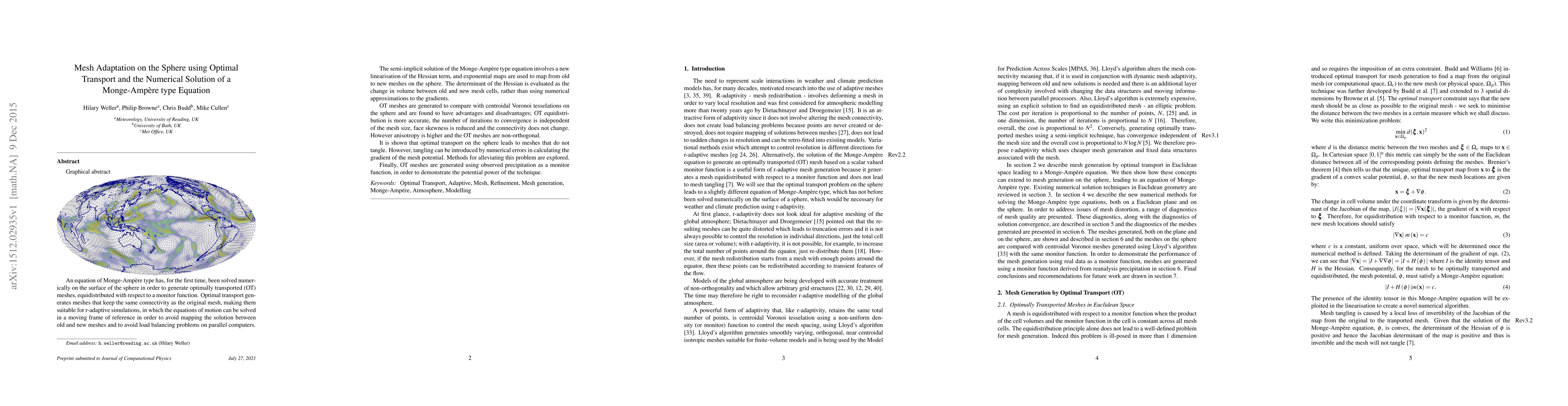 Researchers developed a method to generate optimally transported meshes on the surface of the sphere using Monge-Ampêre type equations, improving mesh equidistribution and connectivity for simulations.