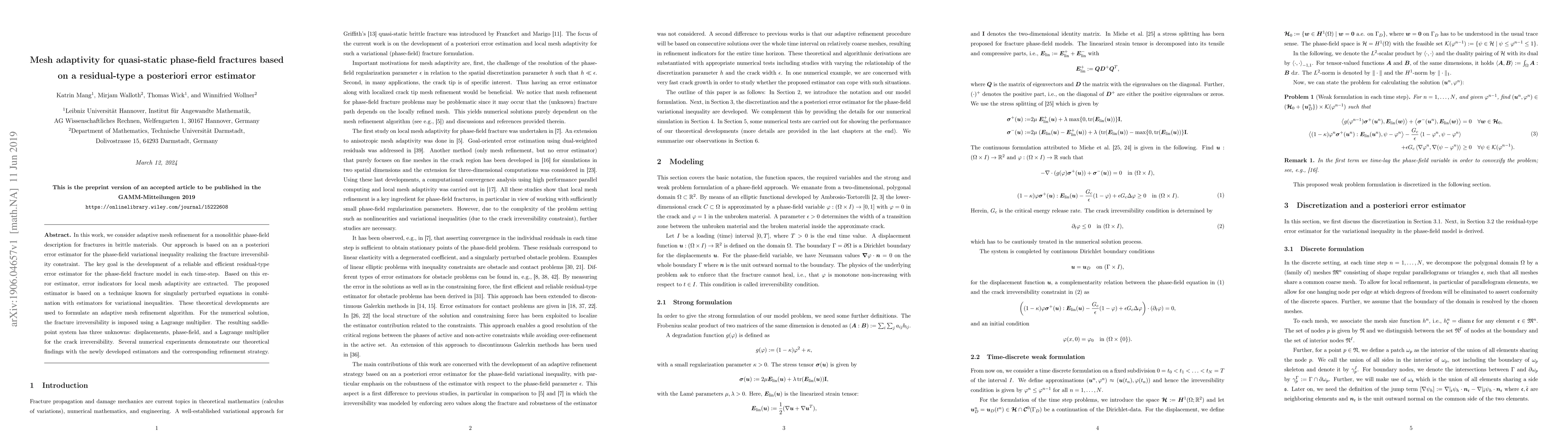 This paper develops an adaptive mesh refinement technique for quasi-static phase-field fracture models, utilizing a residual-type a posteriori error estimator to ensure fracture irreversibility. The proposed method includes a novel error estimator and an adaptive algorithm validated through numerical experiments.