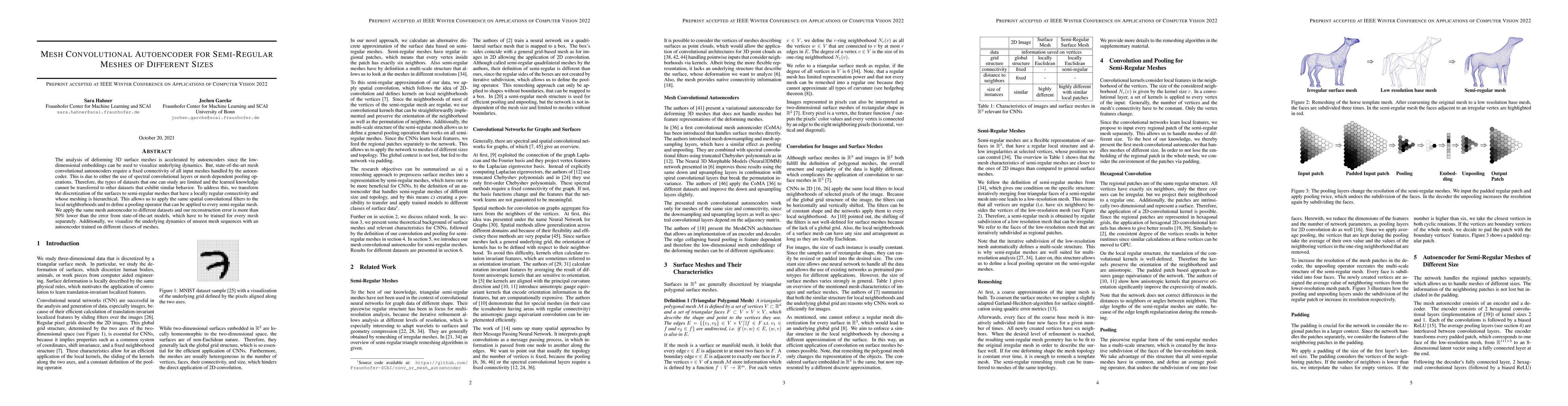 This paper proposes a mesh convolutional autoencoder for semi-regular meshes, enabling the analysis of deforming 3D surface meshes across different sizes. The method achieves a 50% reduction in reconstruction error compared to state-of-the-art models, allowing for knowledge transfer across various mesh datasets.