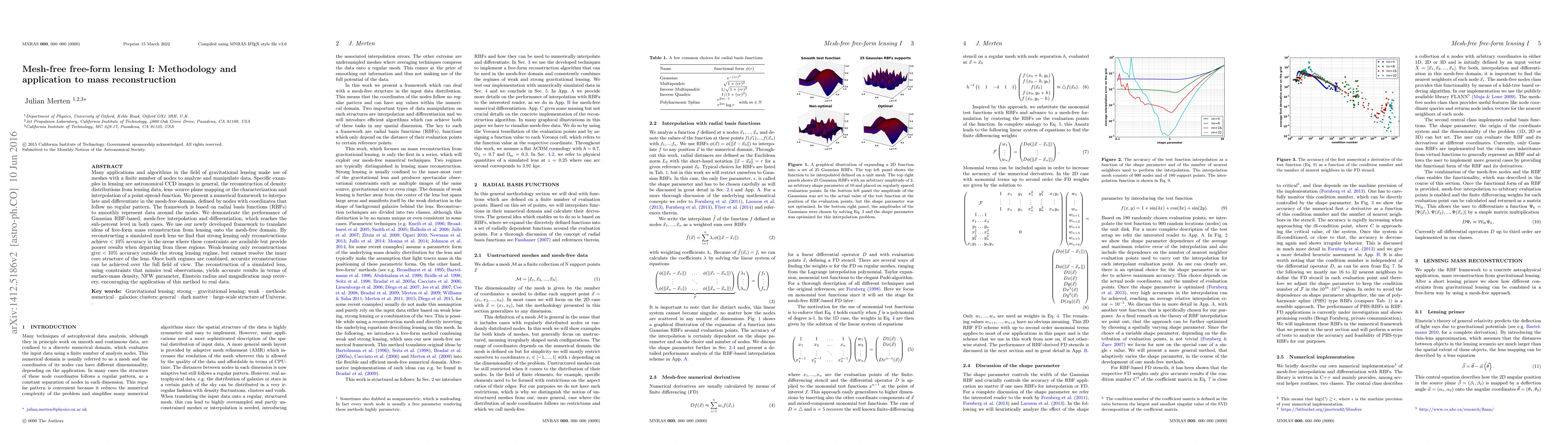 Many applications and algorithms in the field of gravitational lensing make use of meshes with a finite number of nodes to analyze and manipulate data. Specific examples in lensing are astronomical CCD images in general, the reconstruction of density distributions from lensing data, lens-source plane mapping or the characterization and interpolation of a point-spread-function. We present a numerical framework to interpolate and differentiate in the mesh-free domain, defined by nodes with coordinates that follow no regular pattern. The framework is based on radial basis functions (RBFs) to smoothly represent data around the nodes. We demonstrate the performance of Gaussian RBF-based, mesh-free interpolation and differentiation, which reaches the sub-percent level in both cases. We use our newly developed framework to translate ideas of free-form mass reconstruction from lensing onto the mesh-free domain. By reconstructing a simulated mock lens we find that strong lensing only reconstructions achieve < 10% accuracy in the areas where these constraints are available but provide poorer results when departing from these regions. Weak-lensing only reconstructions give < 10% percent accuracy outside the strong lensing regime, but cannot resolve the inner core structure of the lens. Once both regimes are combined, accurate reconstructions can be achieved over the full field of view. The reconstruction of a simulated lens, using constraints that mimics real observations, yields accurate results in terms of surface-mass density, NFW parameter, Einstein radius and magnification map recovery, encouraging the application of this method to real data.