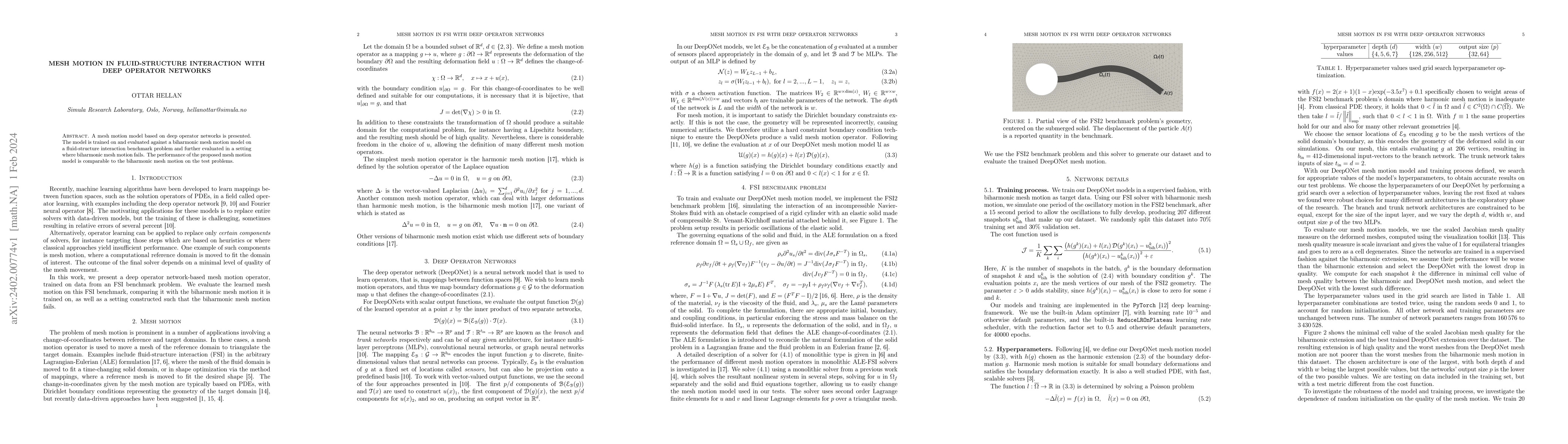 Summary: This paper introduces a mesh motion model based on deep operator networks, demonstrating its performance against a biharmonic mesh motion model in fluid-structure interaction scenarios, showing comparable results where traditional methods fail.