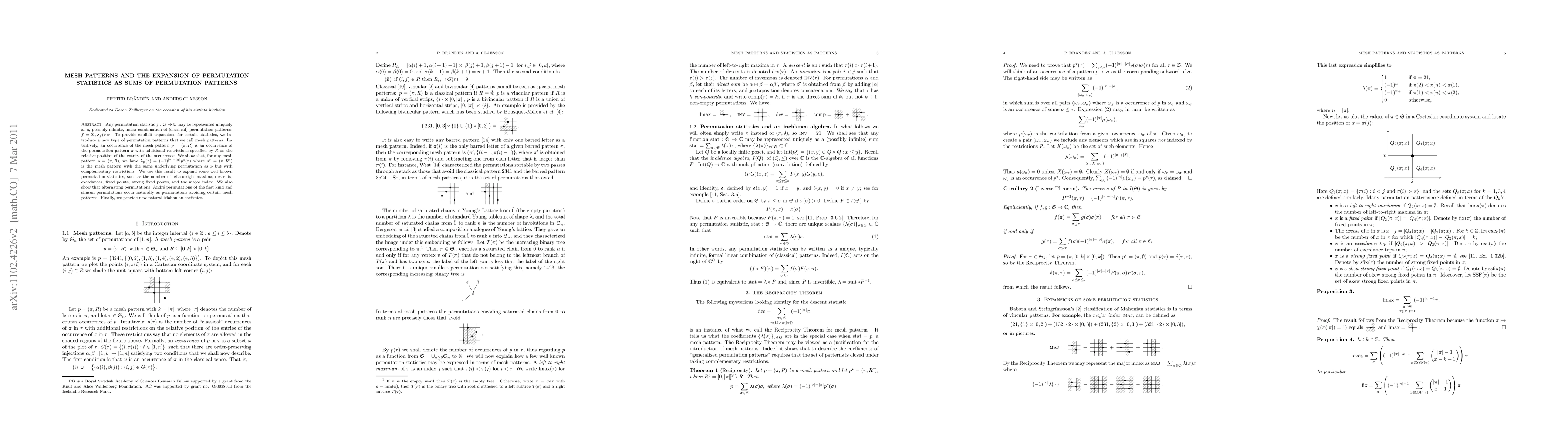 This paper introduces mesh patterns, a novel type of permutation pattern with additional relative position restrictions, to explicitly expand classical permutation statistics into sums of these patterns. It demonstrates expansions for well-known statistics and identifies connections between permutation avoidance of these mesh patterns and specific permutation classes.