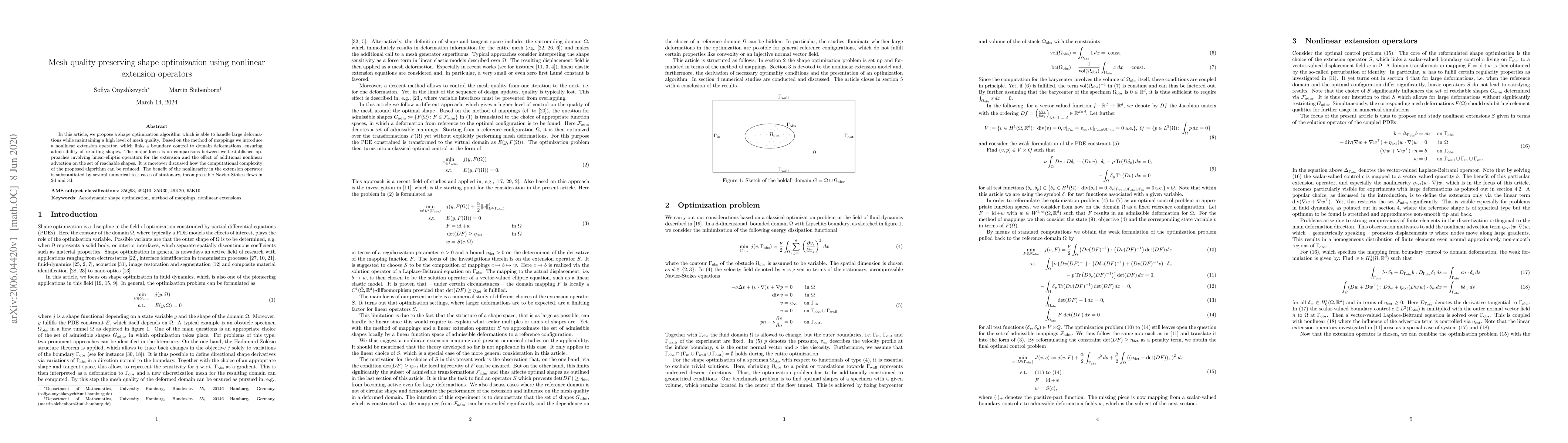 This paper proposes a shape optimization algorithm that maintains high mesh quality during large deformations using a nonlinear extension operator. The method compares linear-elliptic and nonlinear approaches, demonstrating the benefits of nonlinearity through numerical tests on incompressible Navier-Stokes flows.