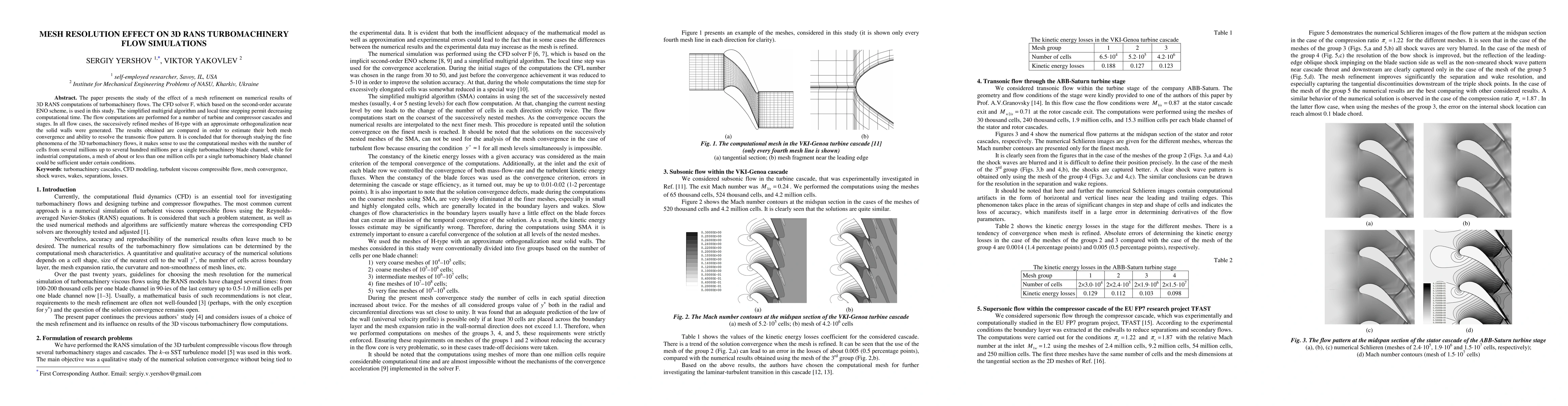 The study examines how mesh resolution affects 3D RANS simulations of turbomachinery flows, concluding that finer meshes (millions of cells) are necessary for detailed studies, but coarser meshes (under 1 million cells) can suffice for industrial computations under certain conditions.