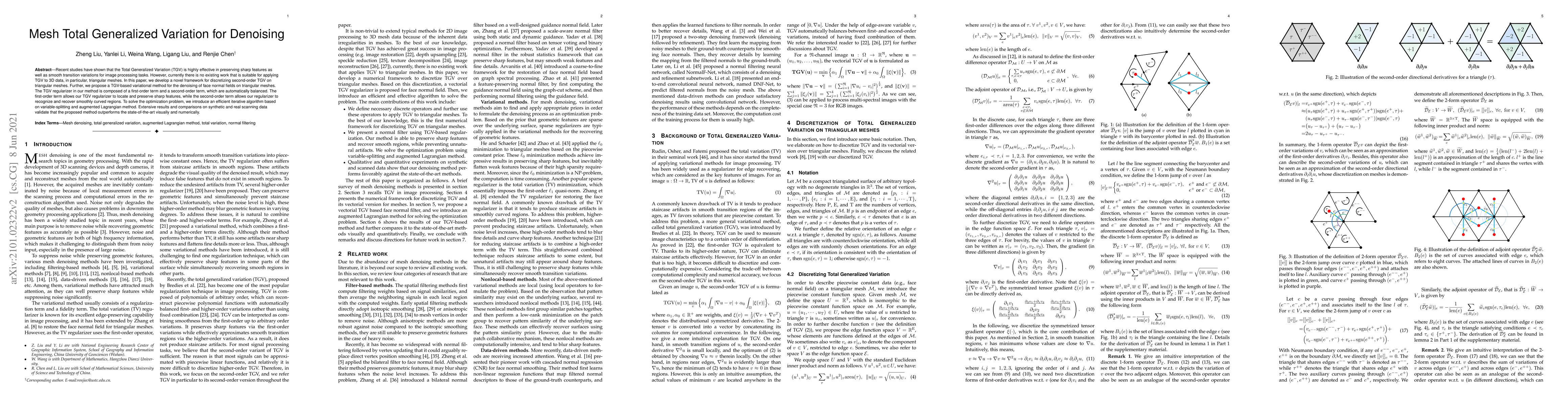 Researchers developed a new method for denoising 3D mesh data using Total Generalized Variation (TGV), which preserves sharp features and smoothly curved regions. The proposed method outperforms state-of-the-art methods in both visual and numerical accuracy.