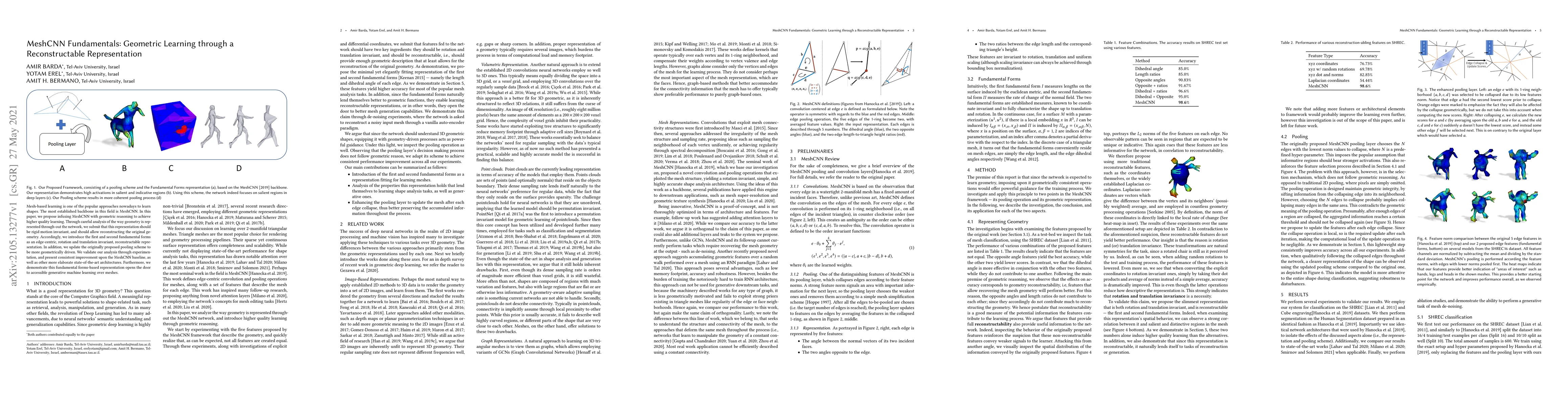 Mesh-based learning is one of the popular approaches nowadays to learn shapes. The most established backbone in this field is MeshCNN. In this paper, we propose infusing MeshCNN with geometric reasoning to achieve higher quality learning. Through careful analysis of the way geometry is represented through-out the network, we submit that this representation should be rigid motion invariant, and should allow reconstructing the original geometry. Accordingly, we introduce the first and second fundamental forms as an edge-centric, rotation and translation invariant, reconstructable representation. In addition, we update the originally proposed pooling scheme to be more geometrically driven. We validate our analysis through experimentation, and present consistent improvement upon the MeshCNN baseline, as well as other more elaborate state-of-the-art architectures. Furthermore, we demonstrate this fundamental forms-based representation opens the door to accessible generative machine learning over meshes.