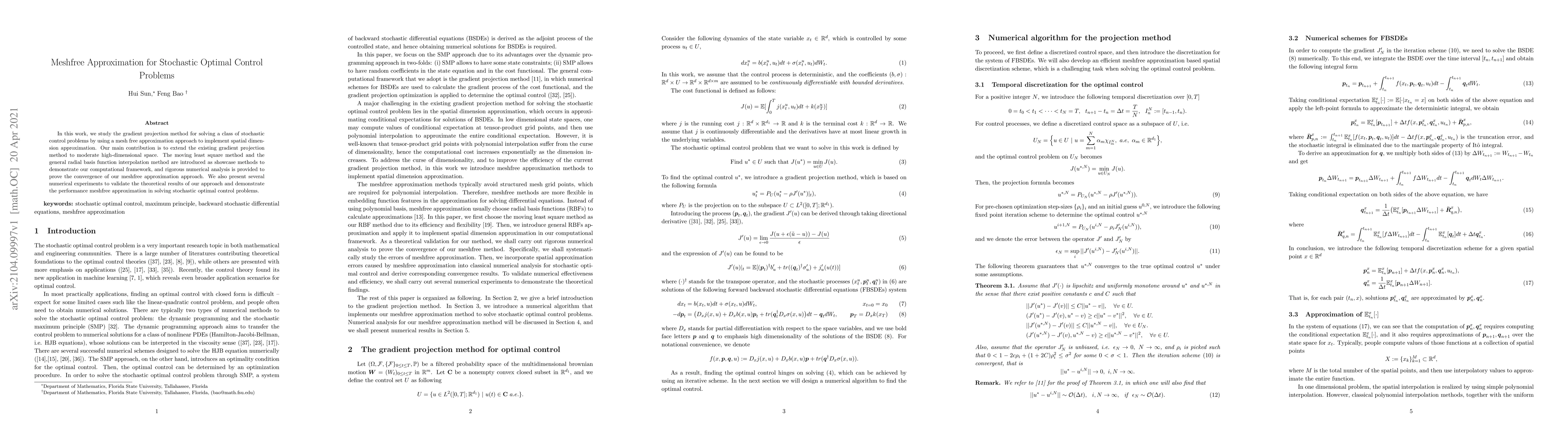 This paper extends the gradient projection method to high-dimensional stochastic control problems using meshfree approximation techniques, specifically the moving least square method and radial basis function interpolation. Numerical analysis proves convergence, and experiments validate the effectiveness of the proposed meshfree approach.