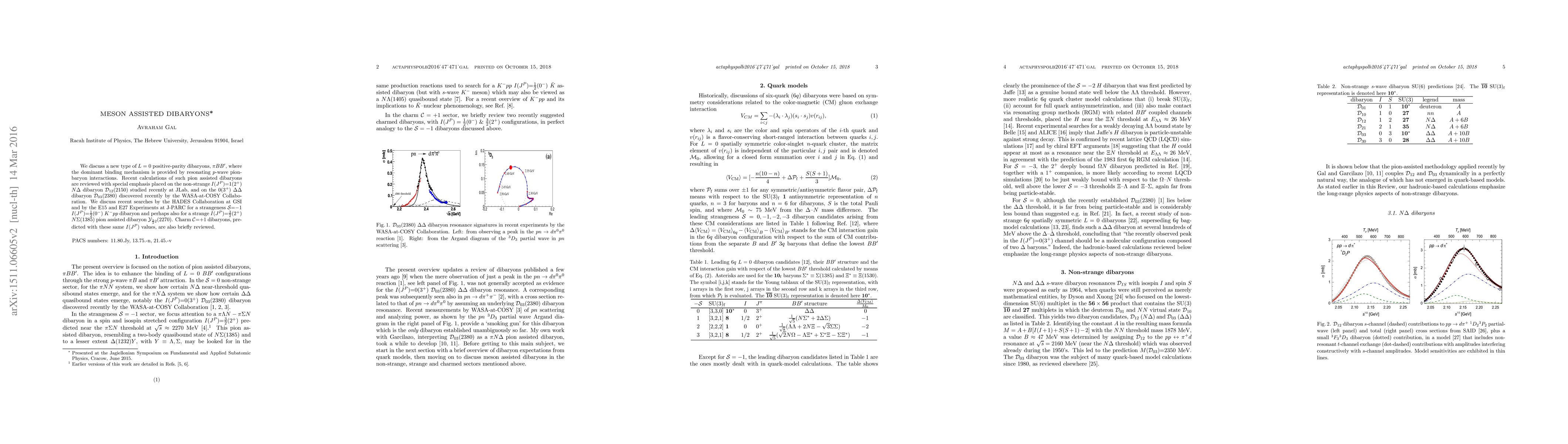We discuss a new type of L=0 positive-parity dibaryons, pion-B-B', where the dominant binding mechanism is provided by resonating p-wave pion-baryon interactions. Recent calculations of such pion assisted dibaryons are reviewed with special emphasis placed on the non-strange I(JP)=1(2+) N-Delta dibaryon D_{12}(2150) studied recently at JLab, and on the 0(3+) Delta-Delta dibaryon D_{03}(2380) discovered recently by the WASA-at-COSY Collaboration. We review recent searches by the HADES Collaboration at GSI and by the E15 and E27 Experiments at J-PARC for a strangeness S=-1 I(JP)=1/2(0-) K-pp dibaryon and perhaps also for a strange I(JP)=3/2(2+) N-Sigma(1385) pion assisted dibaryon Y_{3/2(2+)}(2270). Charm C=+1 dibaryons, predicted with these same I(JP) values, are also briefly reviewed.