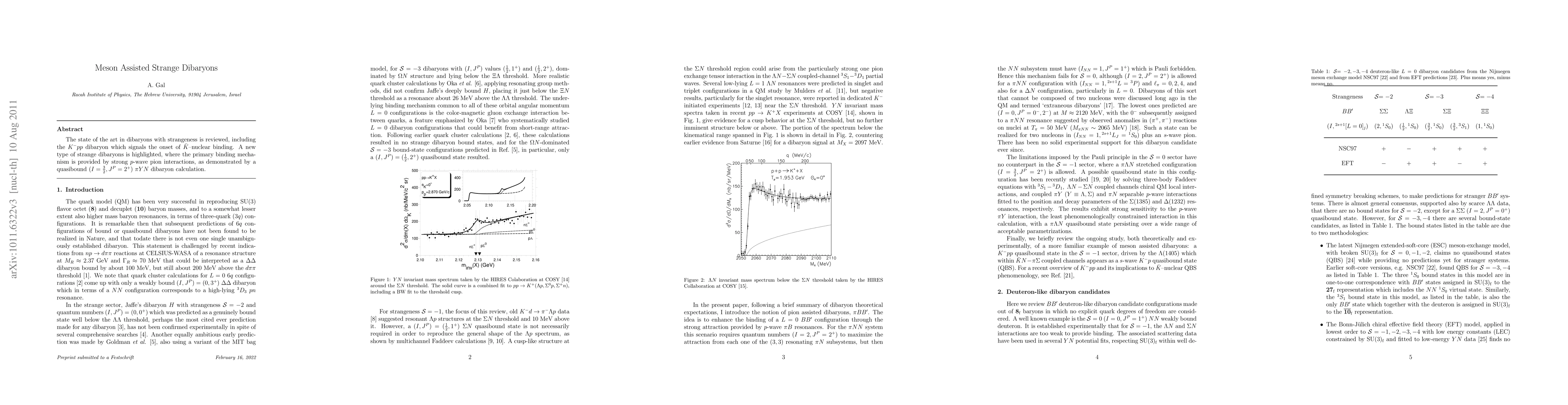 The state of the art in dibaryons with strangeness is reviewed, including the K^{-}pp dibaryon which signals the onset of antikaon-nuclear binding. A new type of strange dibaryons is highlighted, where the primary binding mechanism is provided by strong p-wave pion interactions, as demonstrated by a quasibound (I=3/2,JP=2+) pion-hyperon-nucleon dibaryon calculation.