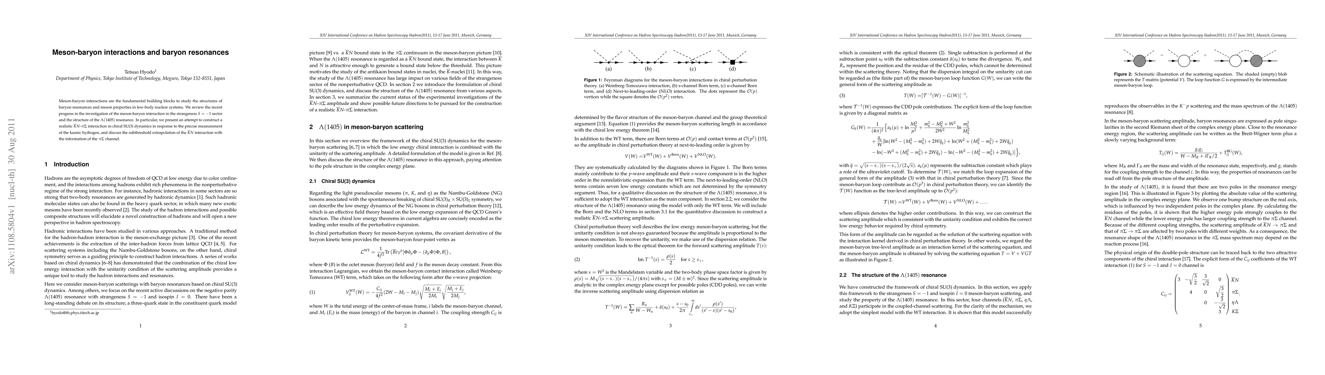 This paper reviews recent advancements in understanding meson-baryon interactions, particularly in the strangeness S=-1 sector, focusing on the structure of the Lambda(1405) resonance. It constructs a Kbar N-pi Sigma interaction in chiral SU(3) dynamics, responding to the precise measurement of kaonic hydrogen, and discusses the extrapolation of the Kbar N interaction using pi Sigma channel information.