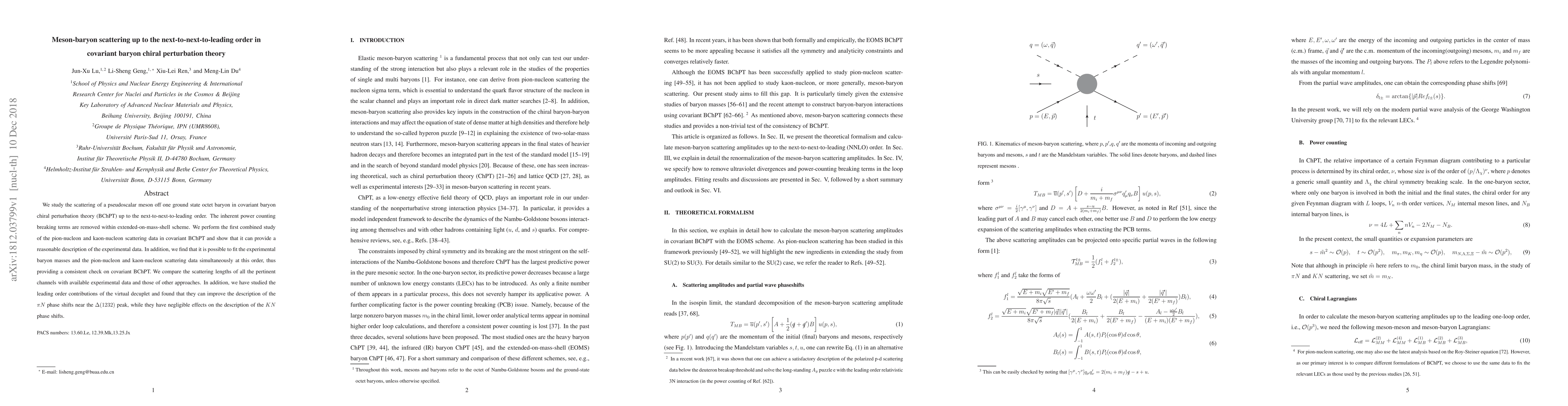 This paper investigates meson-baryon scattering in covariant baryon chiral perturbation theory up to next-to-next-to-leading order, achieving a reasonable description of pion-nucleon and kaon-nucleon scattering data. It also demonstrates the ability to fit experimental baryon masses and scattering data simultaneously, providing a consistent check on the theory.