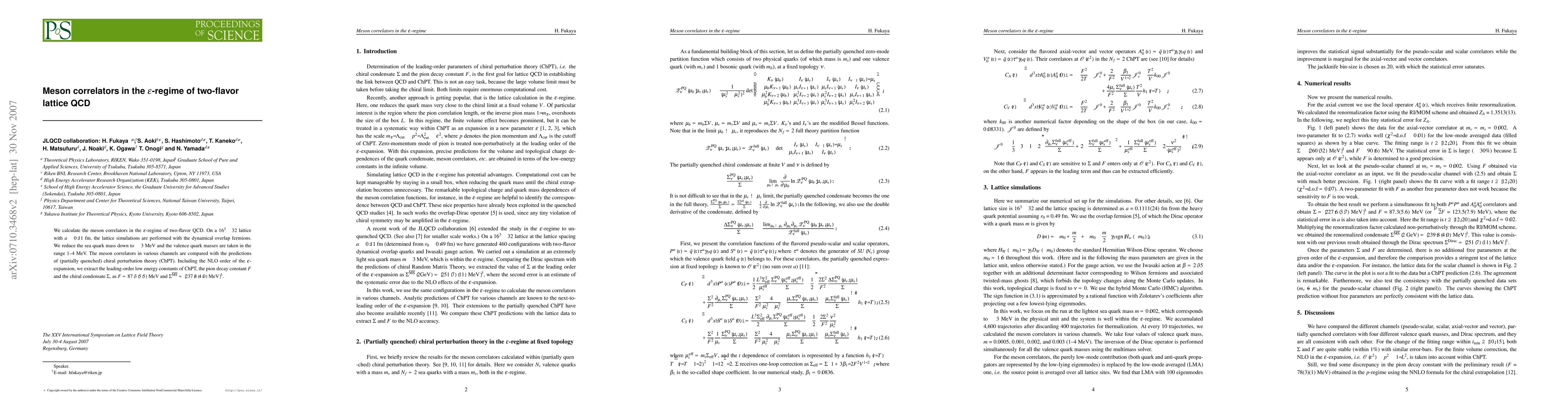 Researchers calculated meson correlators in two-flavor lattice QCD to compare with chiral perturbation theory predictions, extracting the pion decay constant F and chiral condensate υ.