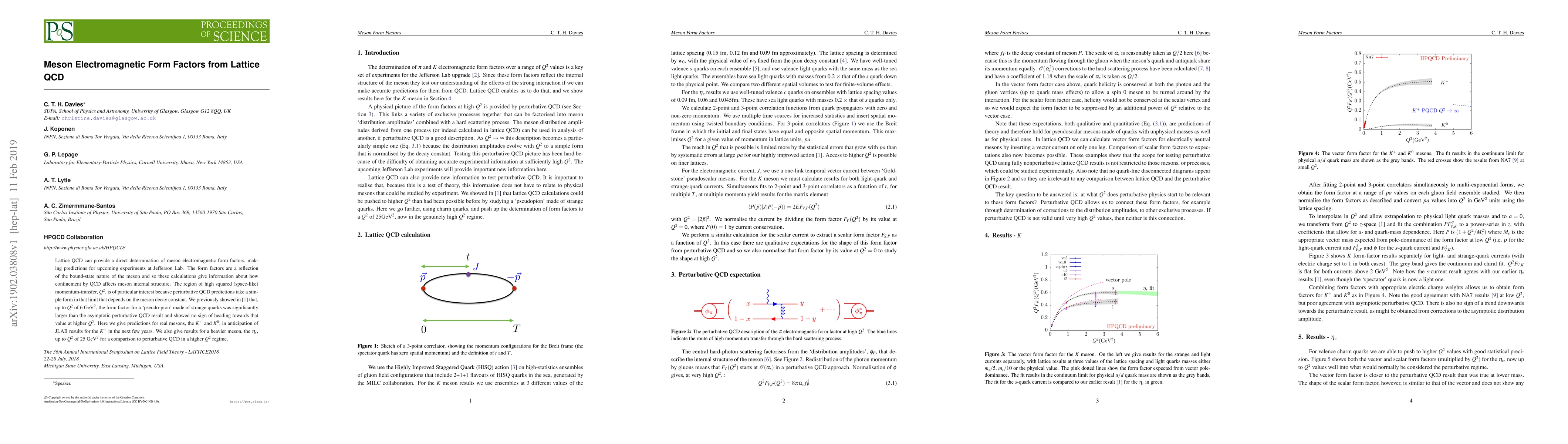 Lattice QCD can provide a direct determination of meson electromagnetic form factors, making predictions for upcoming experiments at Jefferson Lab. The form factors are a reflection of the bound-state nature of the meson and so these calculations give information about how confinement by QCD affects meson internal structure. The region of high squared (space-like) momentum-transfer, $Q^2$, is of particular interest because perturbative QCD predictions take a simple form in that limit that depends on the meson decay constant. We previously showed in\cite{jonnaff} that, up to $Q^2$ of 6 $\mathrm{GeV}^2$, the form factor for a `pseudo-pion' made of strange quarks was significantly larger than the asymptotic perturbative QCD result and showed no sign of heading towards that value at higher $Q^2$. Here we give predictions for real mesons, the $K^+$ and $K^0$, in anticipation of JLAB results for the $K^+$ in the next few years. We also give results for a heavier meson, the $\eta_c$, up to $Q^2$ of 25 $\mathrm{GeV}^2$ for a comparison to perturbative QCD in a higher $Q^2$ regime.