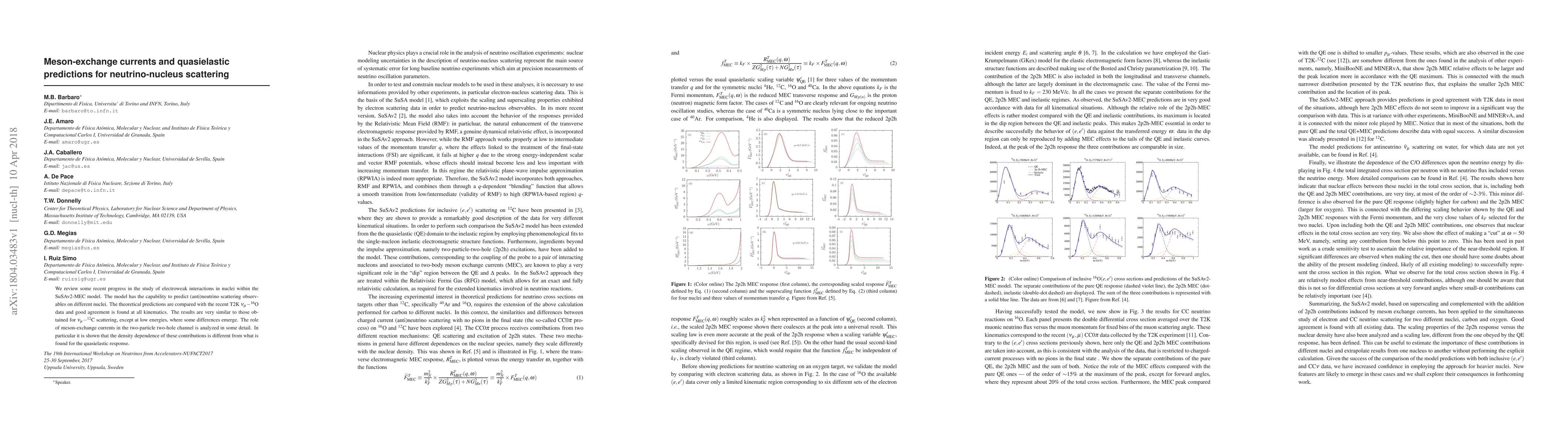 This paper reviews the SuSAv2-MEC model's predictions for neutrino-nucleus scattering, showing good agreement with T2K data for $\nu_\mu-^{16}$O and $\nu_\mu-^{12}$C, except at low energies. It highlights the distinct density dependence of meson-exchange currents in the two-particle two-hole channel compared to quasielastic responses.
